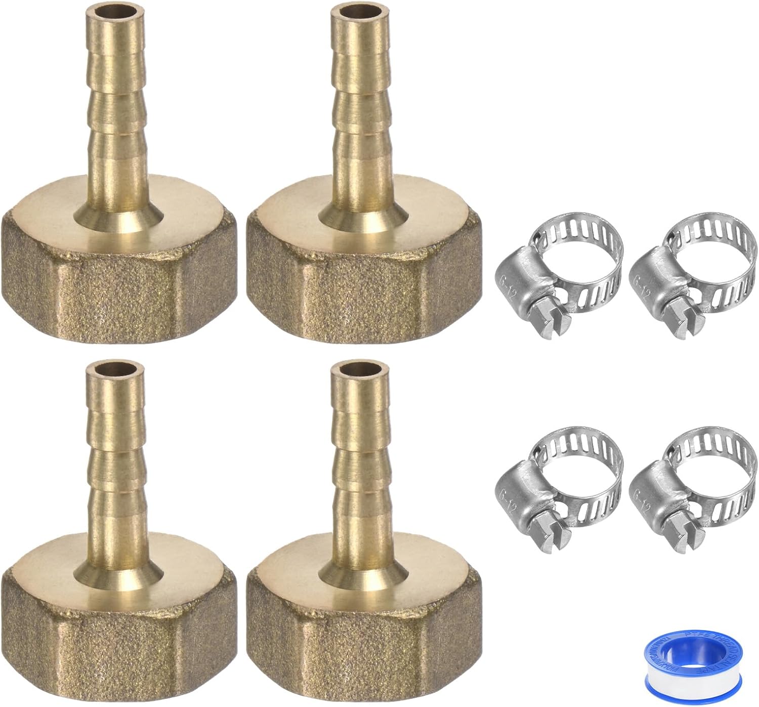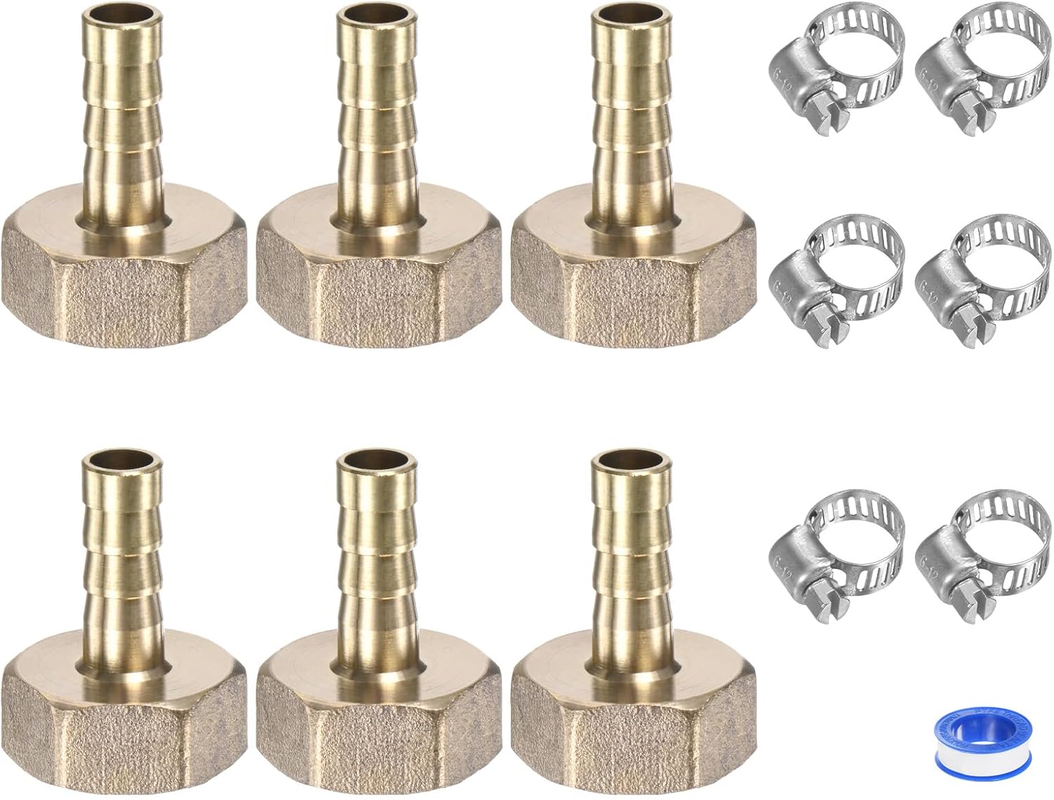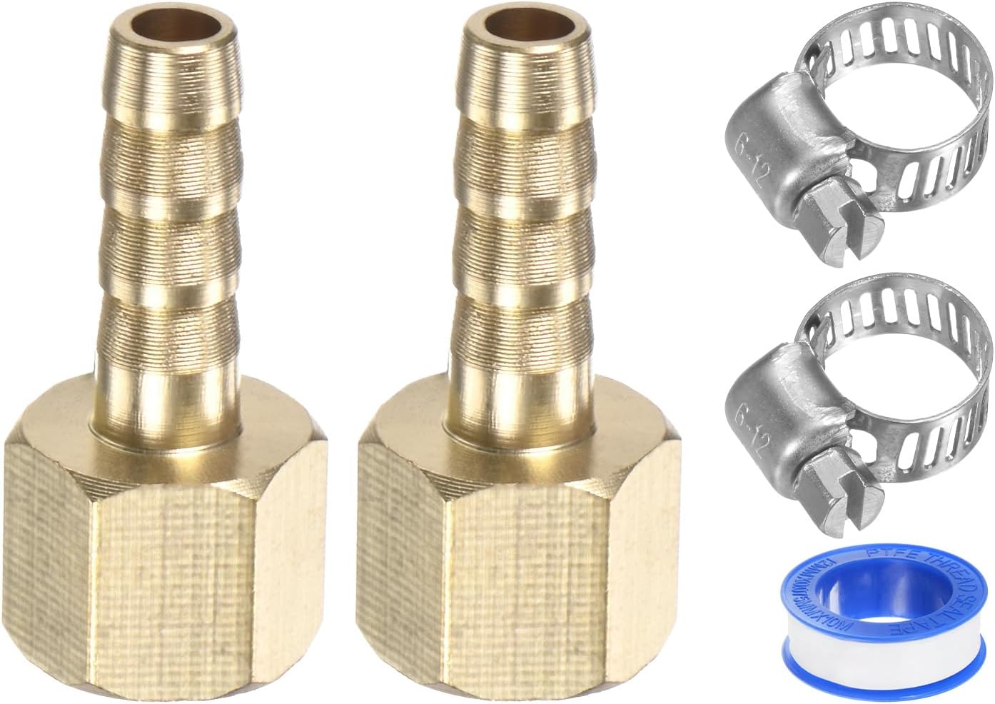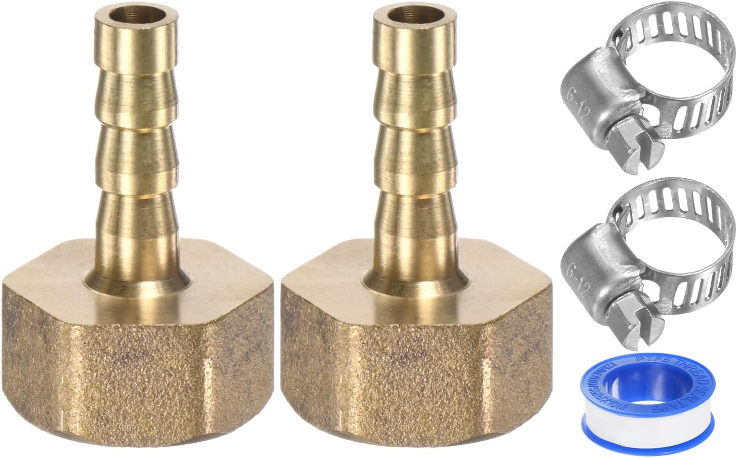 PRODUCT APPLICATIONSThe Brass Barb head is an essential component for connecting hoses, The air hose adapter fittings kit is great for the transportation of oil, air, fuel, industrial use, and automotive.PRODUCT DETAILS & INCLUDE√ Name: Hose Barb Fittings√ Material: Brass√ Barbed Size: 8mm / 0.31 Inch√ Male Thread: G1/8√ Hose Clamp Range: 6mm to 12mm / 0.24 to 0.47 Inch√ Package List:2Pcs x Hose Barb Fittings2Pcs x Hose Clamps1pc x PTFE TapePRODUCT ADVANTAGES1. The Barb hose fitting set is made of brass, which is strong and resistant to corrosion. Wear resistance provides a long time for you. Brass is also more durable than iron and iron galvanized pipe fittings and hose clamps are constructed from resilient stainless steel with a long service life2. The hose barb end grips the hose tightly, and the male threaded end has deep and smooth threads to ensure stronger bite force and sealing performance, effectively preventing seepage. The attached clamp can better fix the air pipe and ensure better sealingATTENTION1. Brass barb hose fitting is not suitable for potable water2. Please confirm the correct size before ordering