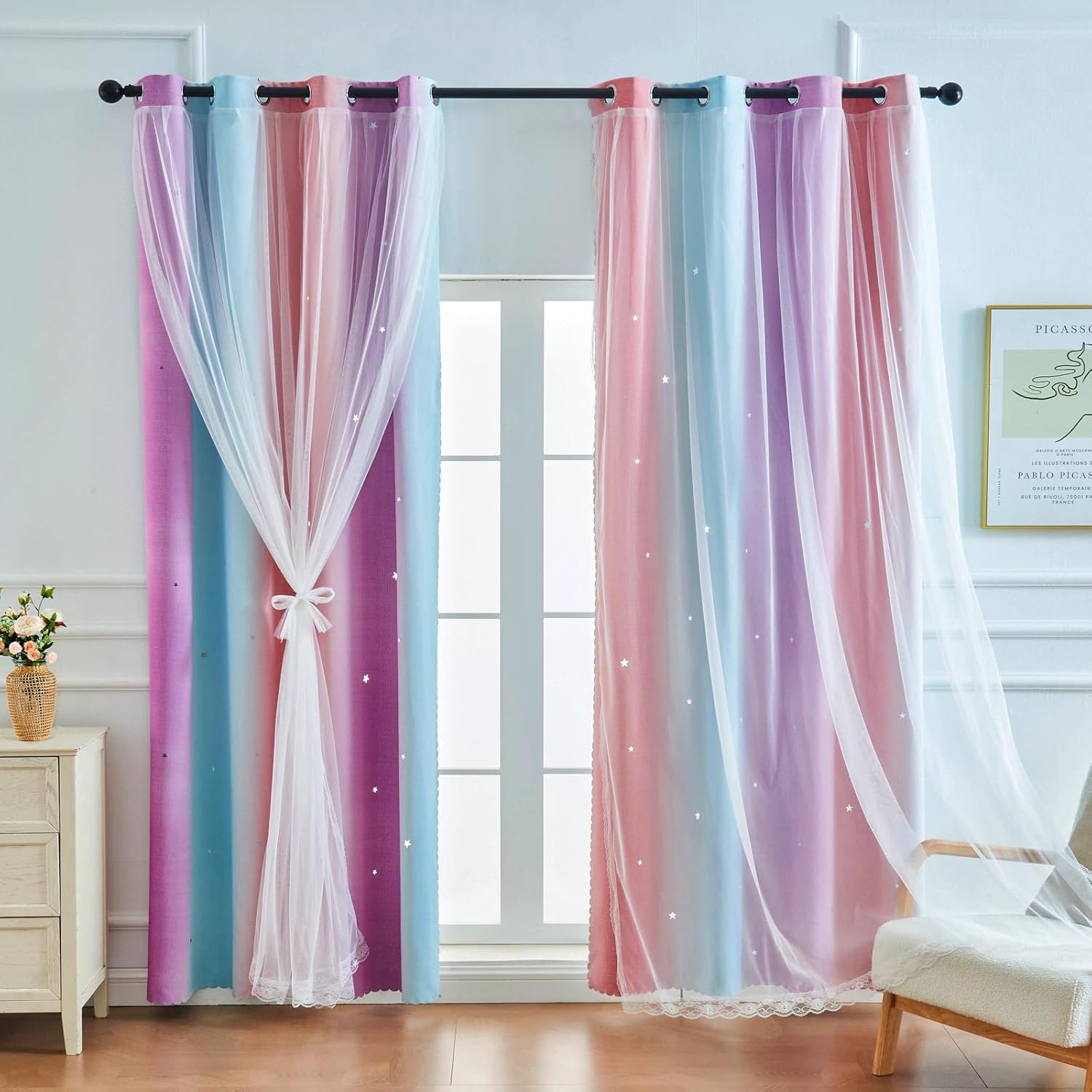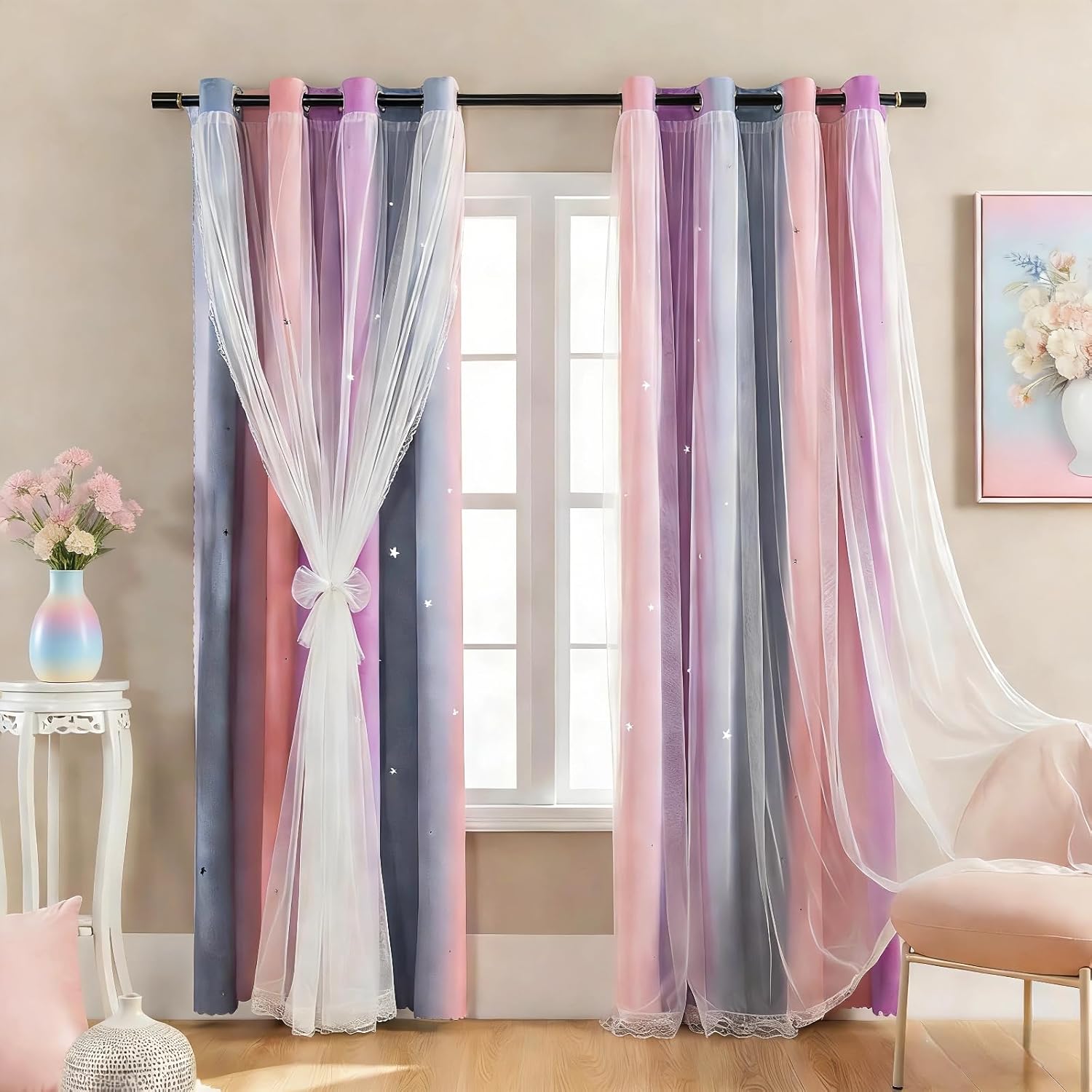 | Lining Description | Double layer design with outer transparent curtain and inner blackout curtain with cut stars |