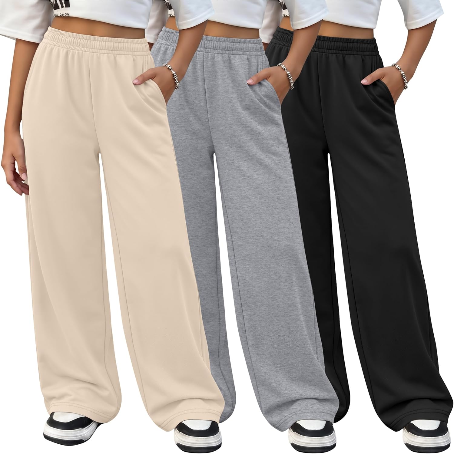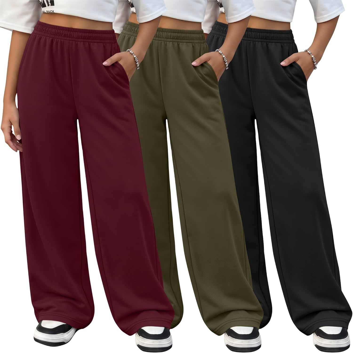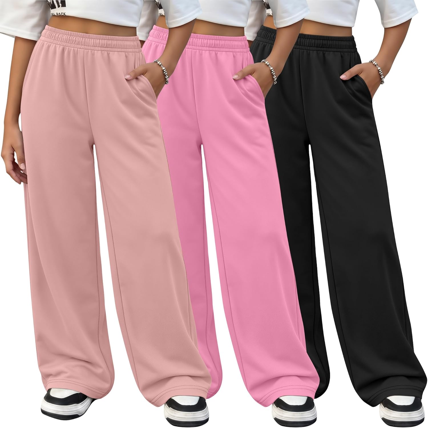 Features: Cute pants for teen girls are designed for kids' active lifestyle, combining safety and comfort with fashion, suitable for daily wear, school, outdoor play, leisure, workout, casual outings or family gatherings etc Our kids sweatpants are available in multiple sizes, please measure your waist and hips according to our size chart and choose the right size of your kids Material: 95% Polyester, 5% Spandex Package includes: 3 X Wide Leg Sweatpants for Girls Notes: Manual measurement, please allow slight errors on size. The color may exist a slight difference due to different screen displays