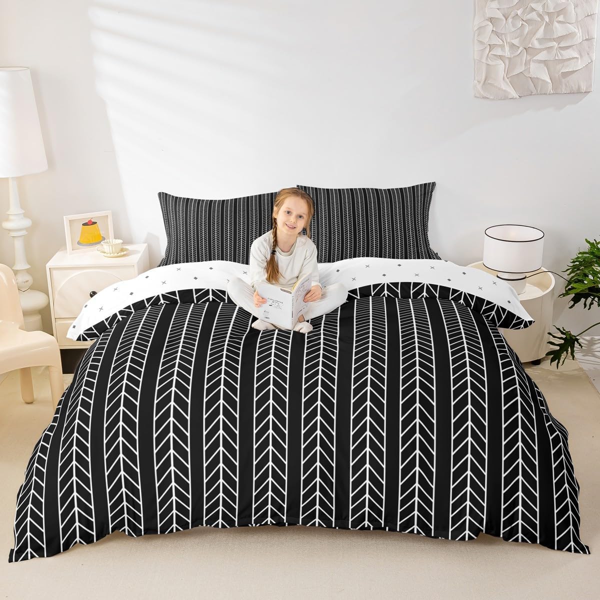 Package Include: Duvet Cover, Pillowcase; High-end Duvet Cover Set Pattern Bedding Set,simply decorating your rooms any time you want, bringing you fresh feel for year round use;Long-lasting:;Made from 100% polyester microfiber,the sheet set offers long-lasting strength, anatural resistance to shrinking and a noticeably soft hand feel;;Size Information::;Twin size : 2 Piece duvet cover set : 1 Duvet Cover 68" x 90",173 x 228 cm , 1 pillowcase 20" x 30",51x75 cm ;Without Comforter;Full size : 3 Piece duvet cover set : 1 Duvet Cover 80" x 90",200 x 229 cm , 2 pillowcase 20" x 30",51 x 75 cm ;Without Comforter;Queen size : 3 Piece duvet cover set : 1 Duvet Cover 90" x 90",229 x 229 cm , 2 pillowcase 20" x 30",51 x 75 cm ;Without Comforter;King size : 3 Piece duvet cover set : 1 Duvet Cover 104" x 90",264 x 229 cm , 2 pillowcase 20" x 36",51 x 92 cm ;Without Comforter;Personalize your bedroom:Beautiful design and colorful print, makes your bedroom unique and brings you a wonderful dream;Washing instructionsMachine wash separately in cold water,hang dry, do not bleach;Occasion:The cute soft duvet cover bedding sets designed for Children ,Adult, Men, Women, Teens; This duvet cover set is also suitable for full seasons, Spring, Summer, Autumn and Winter;
