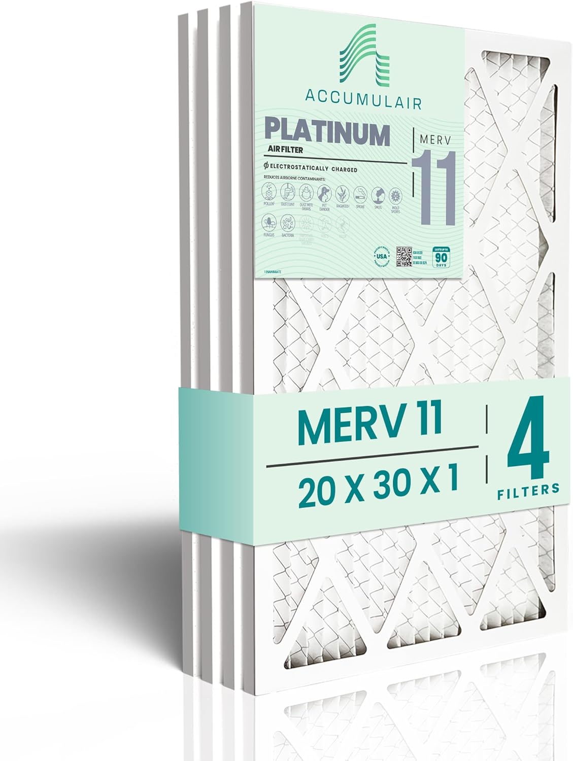 This Accumulair Platinum air filter contains a unique synthetic media that provides high-efficiency filtration without comprising your airflow. The Tribo-Electric media is made up of co-polymer micro-fibers that are hydrophobic, which means the filter does not absorb moisture and will not support the growth and spread of harmful contaminants. To increase durability, the pleated media is laminated to a metal backing that is recyclable, galvanized, and corrosion-resistant. This filter is equipped with media tested to perform at the Minimum Efficiency Reporting Value of 11 (MERV 11) by an independent lab according to ASHRAE Standard 52.2. The high-performance filter captures up to 94% or more of airborne contaminants such as dust, lint, cement dust, lead dust, standing dust, small fibers, pet dander, and other airborne contaminants. All MERV data and statements are indicative of typical properties and characteristics obtainable. MERV claims are to be used as a guide for general comparison and not as a specification.