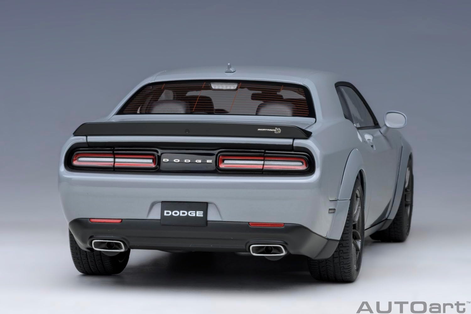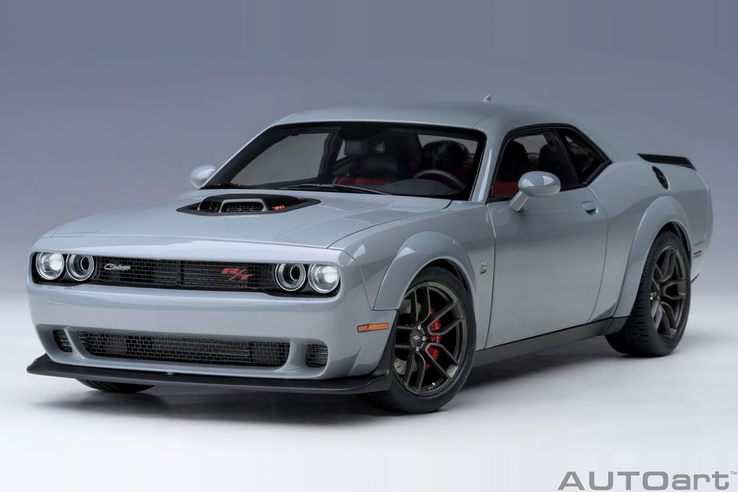 This 1/18 scale model of the 2022 Dodge Challenger R/T Scat Pack Widebody features a sleek Smoke Show Gray finish with AutoArt’s signature high-detail craftsmanship. It showcases the car’s aggressive widebody stance and refined interior, making it an excellent addition for muscle car collectors and model enthusiasts.