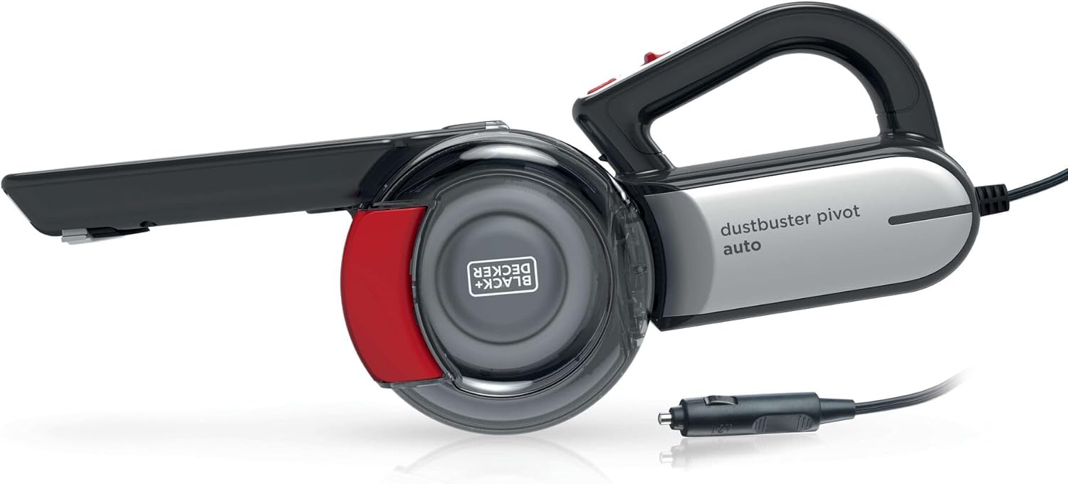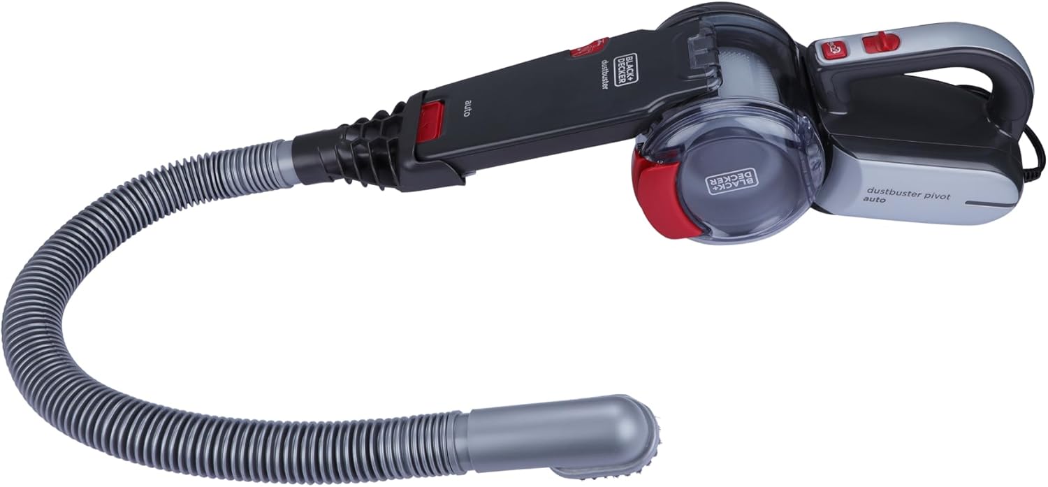The Black+Decker PV1200AV-XJ 12 V Auto Vac is powered through a 12 DC outlet allowing you to efficiently clean your car from daily debris, dust or mud. It is designed to ensure that car cleaning is an effortless task. The cyclonic action spins the dirt away from the filter and maintains optimum suction power and the double action filtration aims to give high performance for longer.With the pivoting nose, which offers 10 different settings, you can easily access areas difficult to reach such underneath and in between seats. And also with the flexible hose and upholstery brush (both included), you can remove pet hair or daily debris from your car seats.This auto vac and accessories come with a handy bag for easy and convenient storage.
