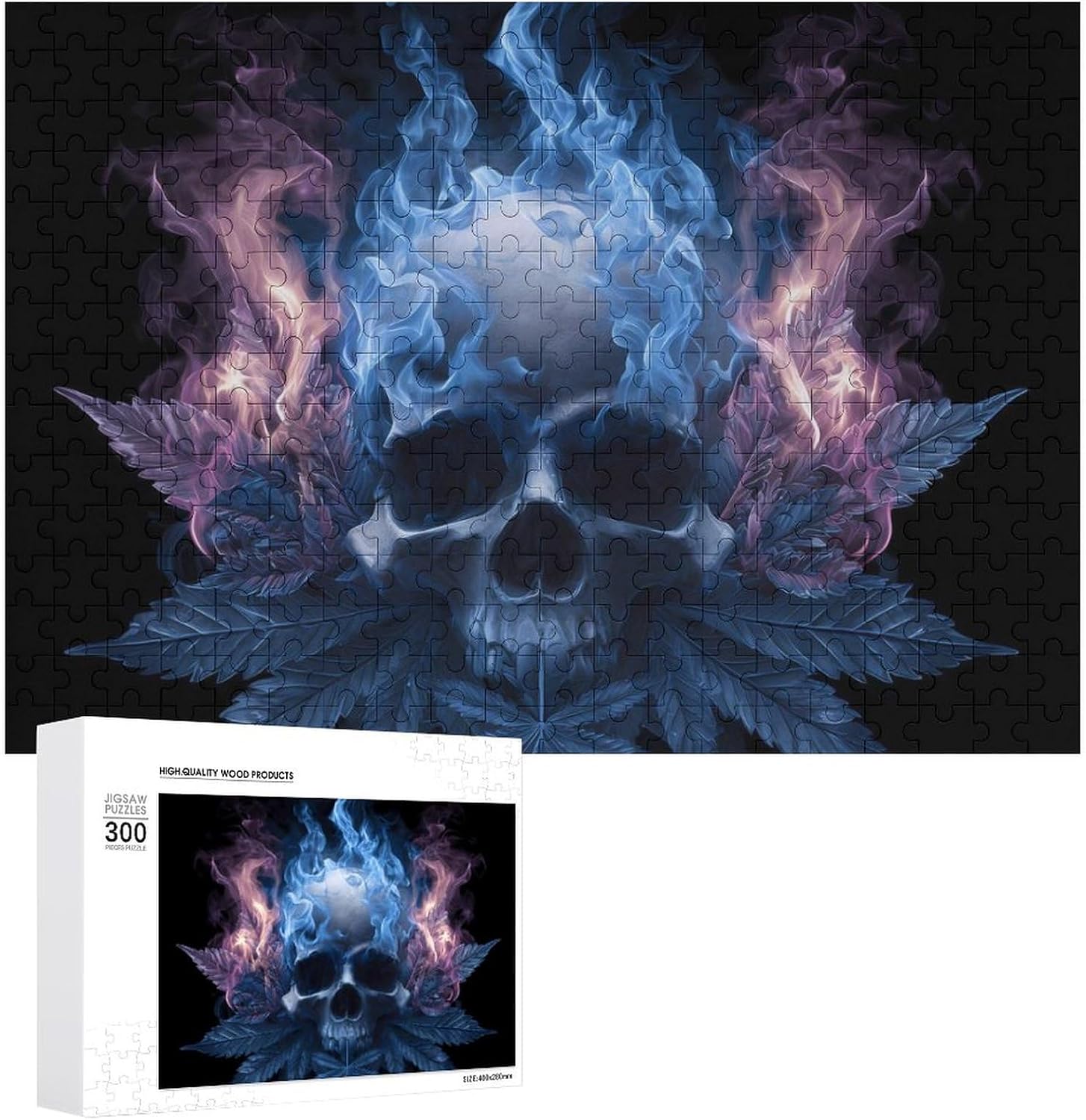 Blue Flame Skull Weed Leaf Puzzles for Adults 500 PCS Wooden Jigsaw Puzzle Wall Decor Christmas
