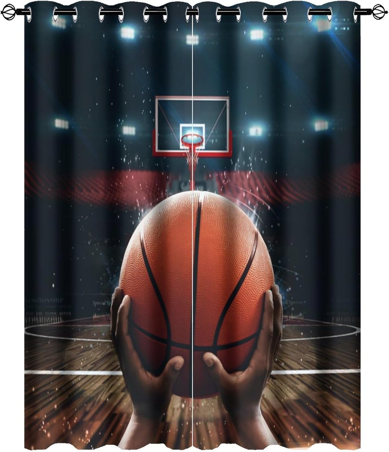 ✿✿:Brebasf Cool Basketball Sports Creative Eyelet Curtains enhance the look and function of your windows. These blackout insulated window treatments are designed to provide maximum privacy and light control while enhancing the overall aesthetic of any room.✿✿ Size Description:◈ 2 panels per package,each panel measures 21x45in(53.5x114cm),total size:42x45in(107x114cm)◈ 2 panels per package,each panel measures 21x54in(53.5x137cm),total size:42x54in(107x137cm)◈ 2 panels per package,each panel measures 21x63in(53.5x160cm),total size:42x63in(107x160cm)◈ 2 panels per package,each panel measures 27.5x63in(70x160cm),total size:55x63in(140x160cm)◈ 2 panels per package,each panel measures 31.5x63in(80x160cm),total size:63x63in(160x160cm)◈ 2 panels per package,each panel measures 31.5x72in(80x183cm),total size:63x72in(160x183cm)◈ 2 panels per package,each panel measures 36x63in(91.5x160cm),total size:72x63in(183x160cm)◈ 2 panels per package,each panel measures 42x84in(107x214cm),total size:84x84in(214x214cm)✿✿:Ideal for bedrooms, living rooms, kitchens, or any space that needs a little extra glamor, these curtains offer a versatile solution for all of your window treatments needs. The perforated design allows just the right amount of natural light to pass through the curtains while maintaining privacy and creating a cozy and welcoming atmosphere.✿✿:Perforated curtains can enhance the ambiance of your home. Experience a combination of practicality, style, and versatility with these blackout thermal curtains. Turn your living space into a tranquil sanctuary and enjoy the added benefits of temperature control and privacy. Upgrade your window treatments in time for Halloween, Christmas, Thanksgiving and Mother's Day and enjoy the benefits of these perforated blackout window treatments.