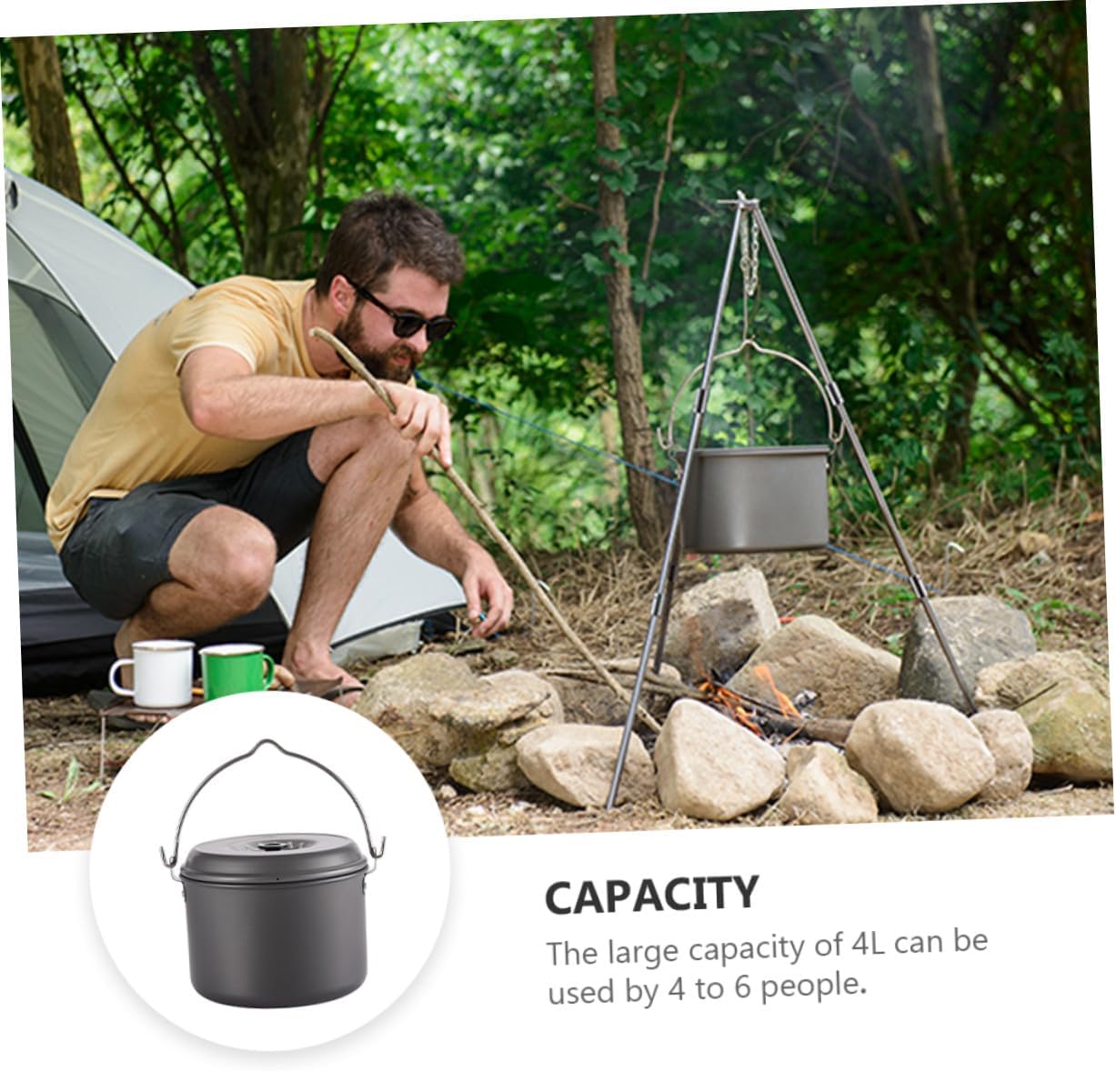 Package List 1 x Pot Characteristics - Material: Alumina. -Product Info:Portable camping pot - Capacity: 4L camp cookware. - Size: Approx. 21.00X21.00X13.50cm/8.25X8.25X5.31in. - Color: Assorted Color. - The pan ears are fixed with rivets, which are very firm and can be used for a long time backpacking utensils. - The groove design of the handle is more conducive to maintaining balance when cooking is hanging backpacking cooking pot. - hard aluminum oxide material, strong and durable, not easy to rust and scratch. - With good thermal conductivity, food can be heated faster, and delicious food can be enjoyed in a short time camp utensils. - This camping pot is designed for 4-6 people, suitable for camping, hiking, backpacking, picnics, etc camp cooking kit.Goods DescriptionDurable Cook Kit With it, you can enjoy camping cooking time with your family.camping cookware Do you want to have a portable camping pot? Then, our camping pot with handle is your .camping utensils Using hard alumina material, it has good thermal conductivity