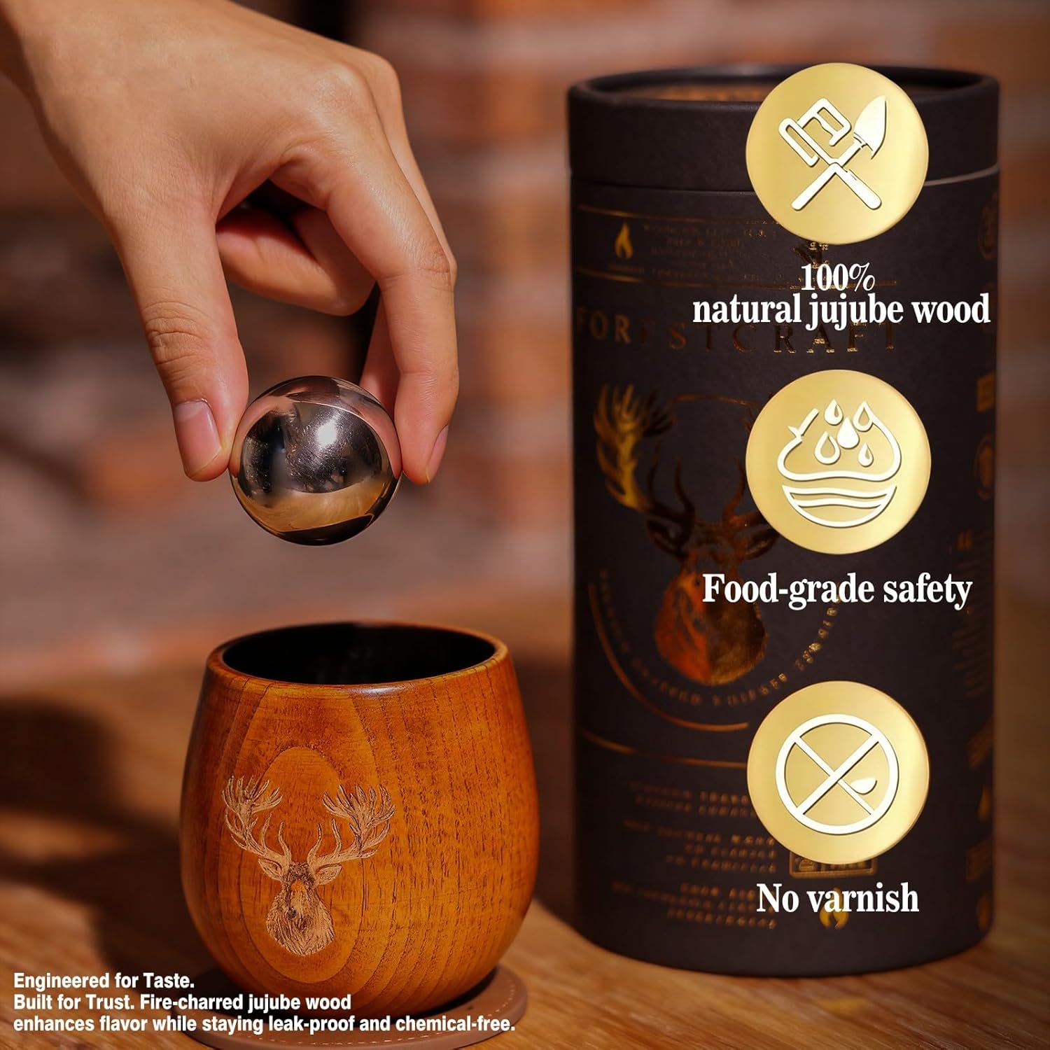 | Included Components | Coasters (2), Silicone Ice Containers (2), Stainless Steel Whiskey Balls (2), Whiskey Around the World Companion Book (1), Wooden Tumblers (2) |