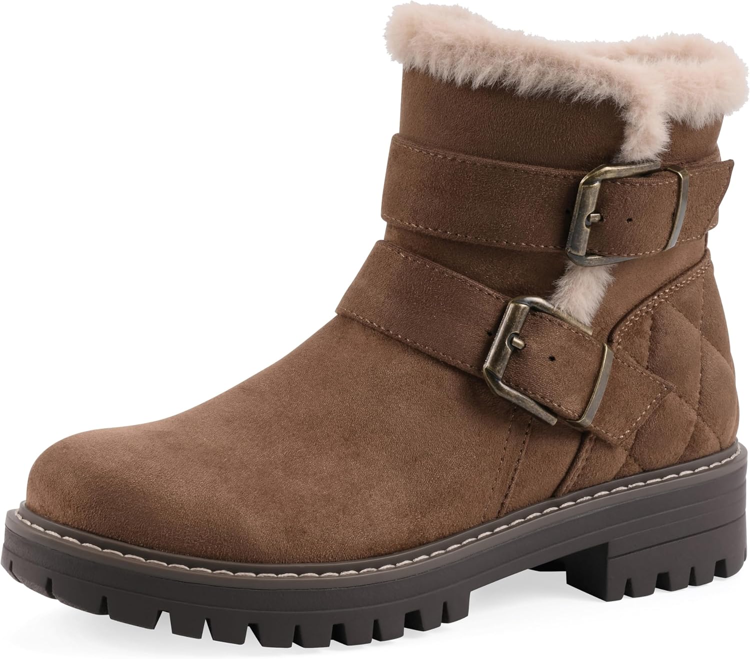 | Embellishment Feature | Buckle, Contrast Stitching, Faux Fur Trim |
