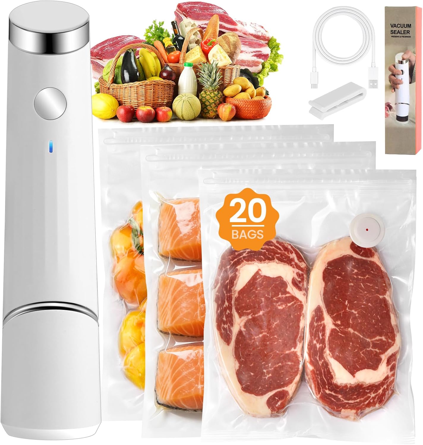 【Reusable BPA-Free Vacuum Bags】Upgraded Reusable Vacuum Bags: Includes durable BPA-free vacuum bags that are washable, resealable, and reusable. Safe for the dishwasher, freezer, and microwave, these leak-proof and odor-resistant bags help preserve freshness while reducing plastic waste. (Note: Clean and thoroughly dry vacuum bags before reuse.)