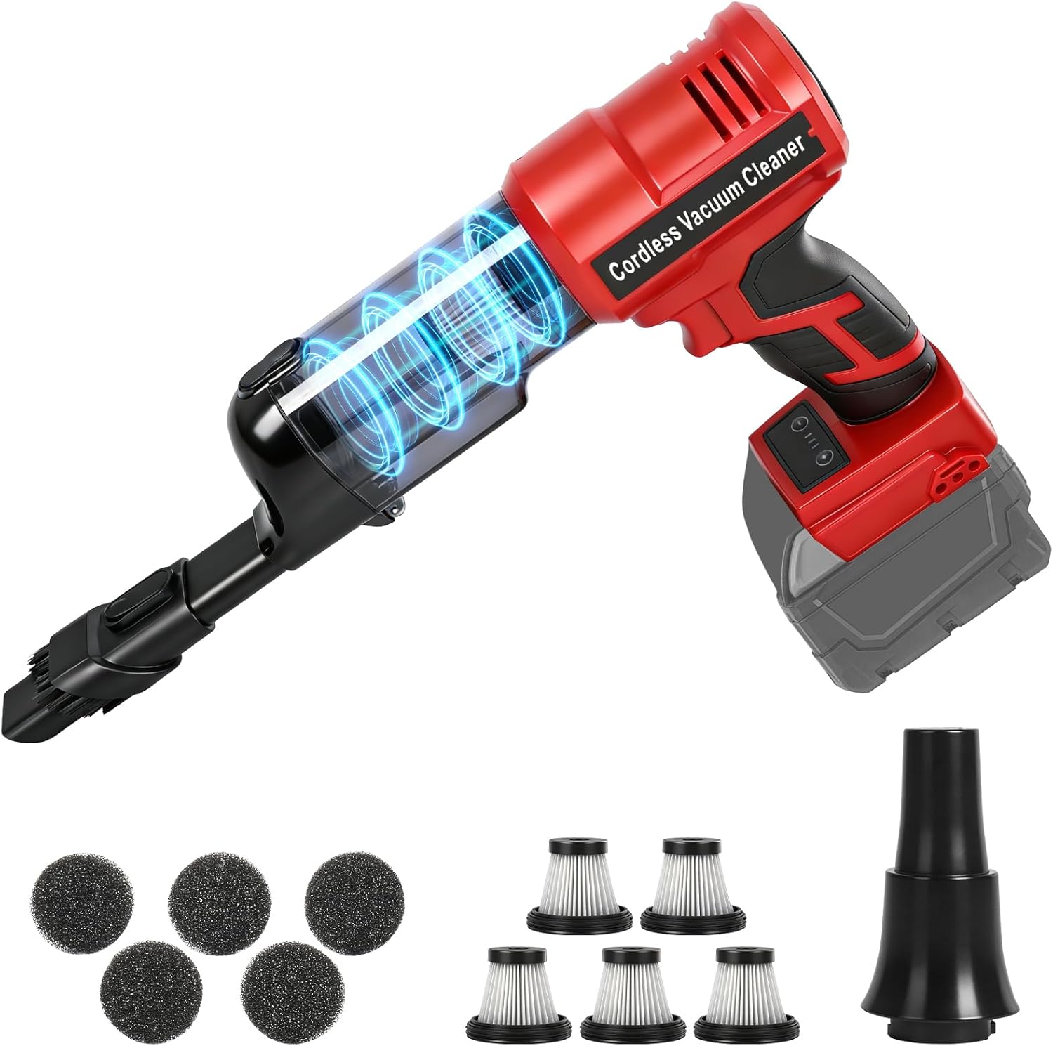"FormiPow Cordless Handheld Vacuum for Ryobi 18V Battery | Tool OnlyCompatible with Ryobi 18V ONE+ batteries, this handheld vacuum delivers 105AW suction via a 240W brushless motor. Features 3-speed control, integrated LED light, and includes 4 specialized nozzles plus 5 replacement filters and foam pads. Lightweight design for car, carpet, floor, and home cleaning.Key Specifications:Power Source: Compatible with Ryobi 18V ONE+ Battery (Not Included)Motor: 240W BrushlessSuction Power: 105AWAirflow: 960L/minSpeed Settings: 3 (Low/Medium/High)LED Light: Yes (Integrated)Included Nozzles: Wide Nozzle, Extended Brush Nozzle, Extended Wide Nozzle, Small Suction NozzleIncluded Filters: 5 Replacement Filters + 5 Foam PadsTool Weight: 2.6 lbs (1.18kg)"