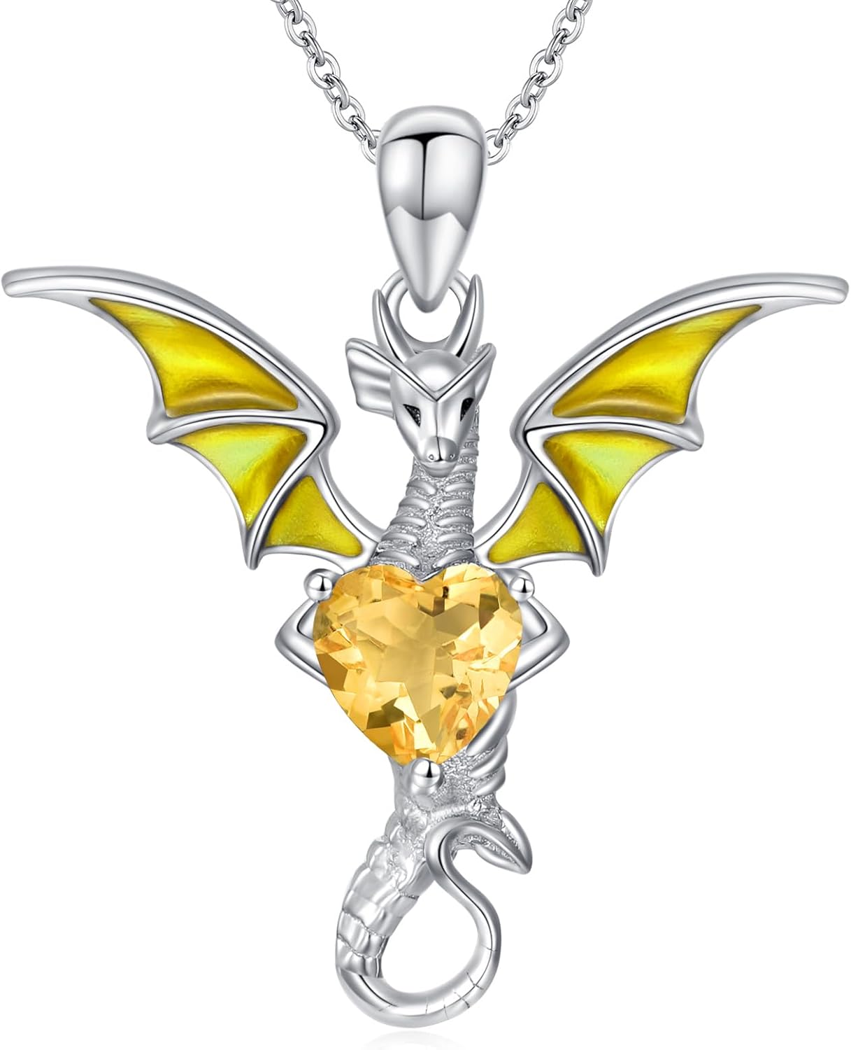 Dragon Necklace for Women 925 Sterling Silver Dragon with Heart Cut Birthstone Pendant Necklace