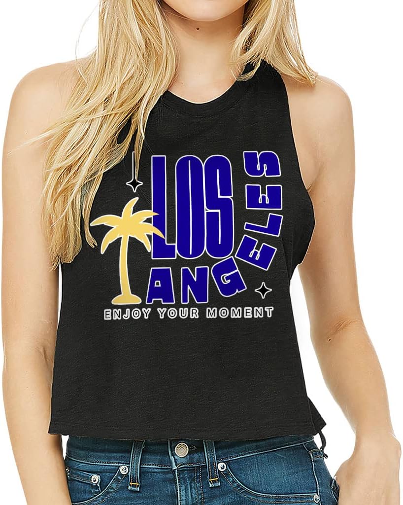 Cute and flattering Enjoy Your Moment Racerback Cropped Tank is suitable for most indoor or outdoor activities, such as gym, yoga, running, hiking, beach or relaxing around the house. Pair Los Angeles Women's Tank with your favorite sports bras, especially strappy ones, and high-waisted leggings, then you will enjoy cool and comfortable exercise throughout the summer.