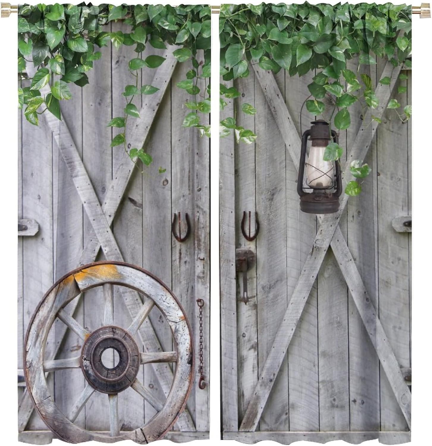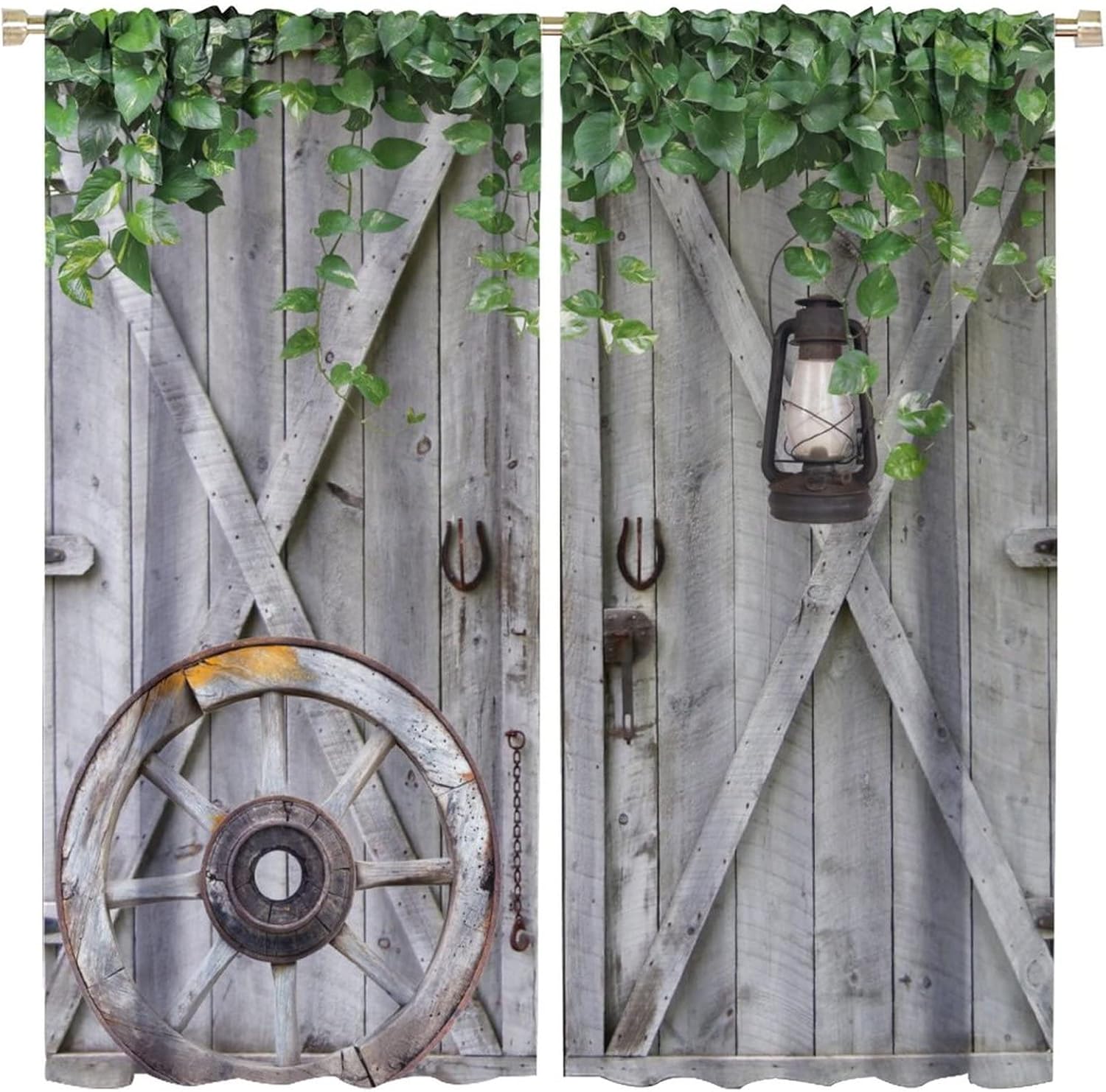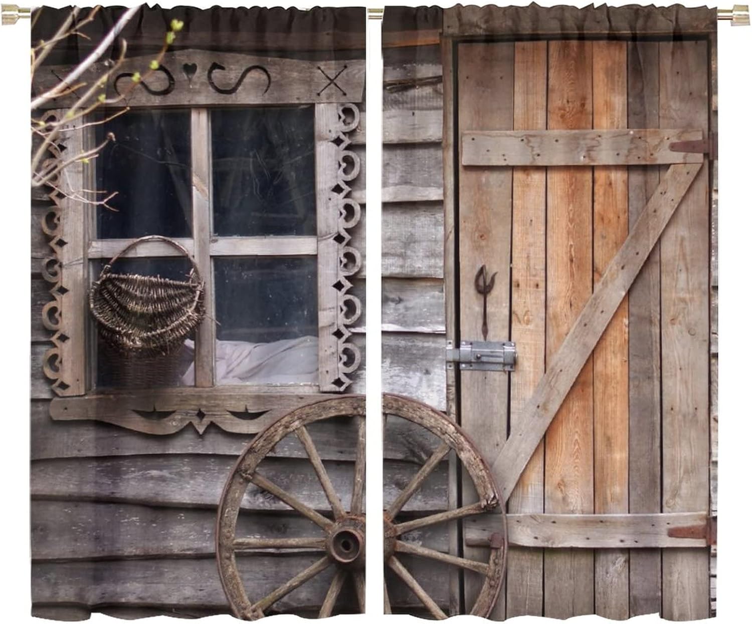 This Farmhouse Wooden Barn Door Curtains can block out 85%-99% sunlight and UV ray ( Darker colors work better), perfect for late sleepers and afternoon naps. Our energy saving curtains insulate against summer heat and winter chill to balance your room temperature, reduce outside noise .This Farmhouse Wooden Barn Door Curtains liven up your indoor or outdoor spaces with a sense of airiness and beauty.These Farmhouse Wooden Barn Door Curtains are suitable for the bedroom, living room, dining room, infant room, kids room, office or other public place.Material:Polyester high quality fabric curtains, warm and interesting, beautifully designed.Kindly Remind:- Don't use sharp things scratching curtains.- For proper fullness panels should slightly larger than the window size the width of your window.- 24 Hours customer support.- As different computers display colors differently, the color of the actual item may vary slightly from the above images.