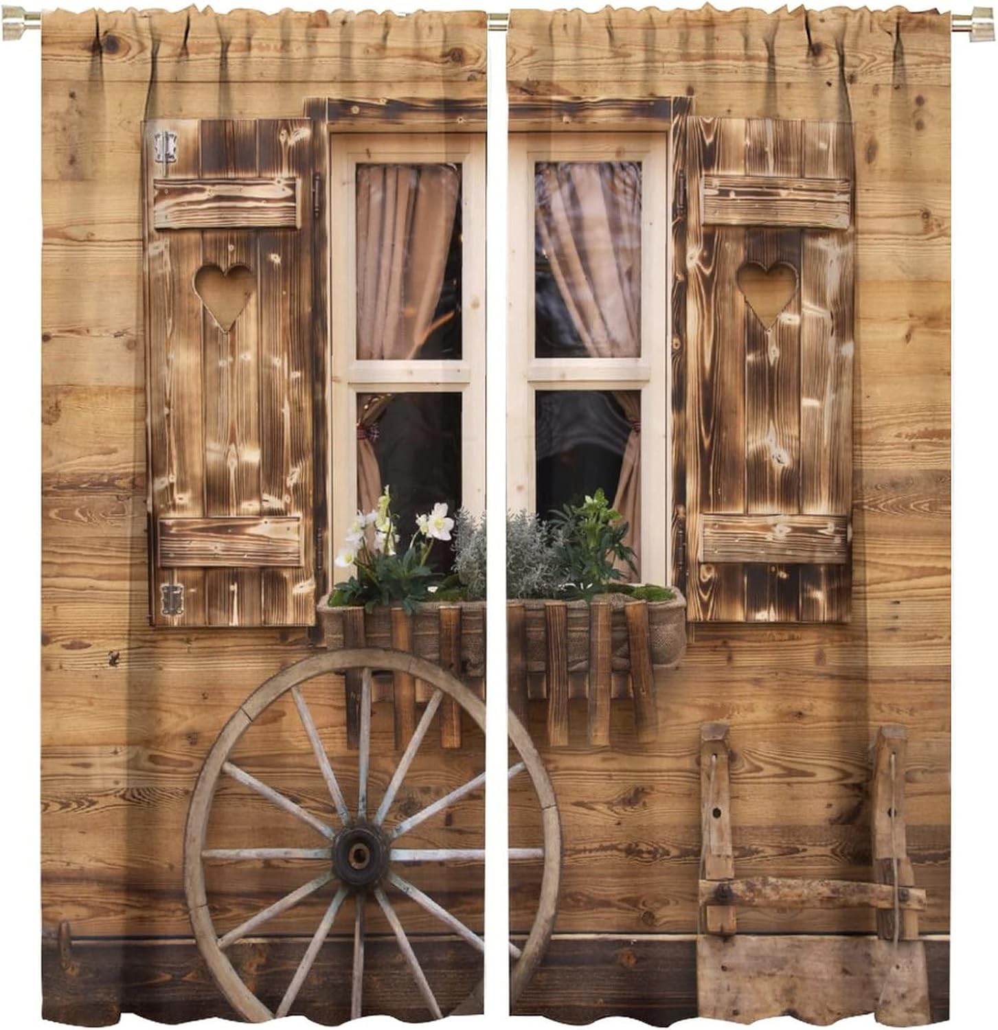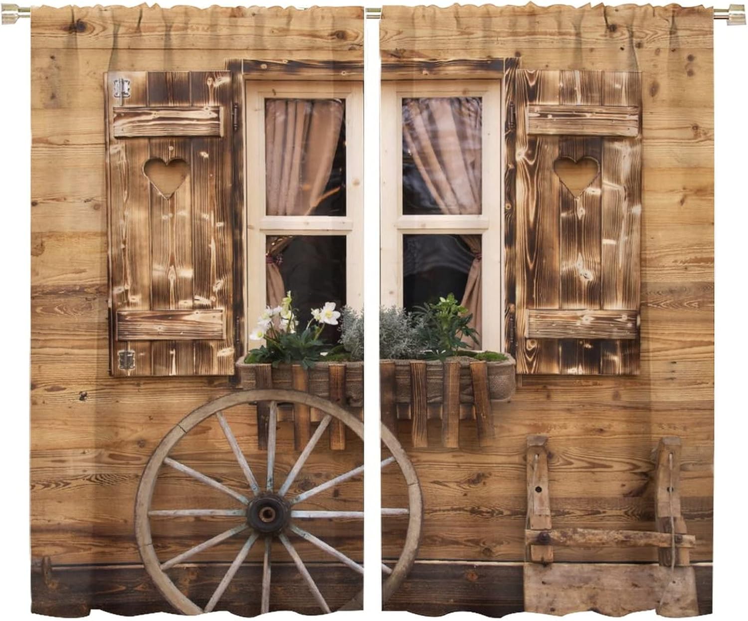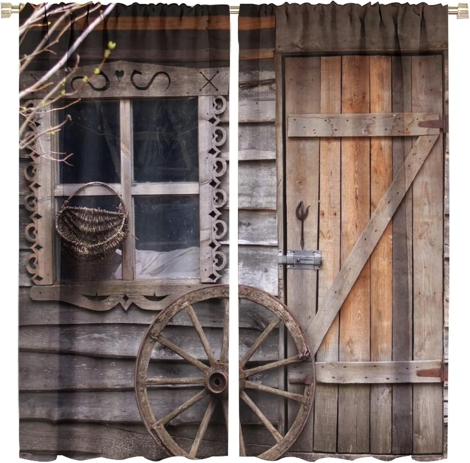 This Farmhouse Wooden Barn Door Curtains can block out 85%-99% sunlight and UV ray ( Darker colors work better), perfect for late sleepers and afternoon naps. Our energy saving curtains insulate against summer heat and winter chill to balance your room temperature, reduce outside noise .This Farmhouse Wooden Barn Door Curtains liven up your indoor or outdoor spaces with a sense of airiness and beauty.These Farmhouse Wooden Barn Door Curtains are suitable for the bedroom, living room, dining room, infant room, kids room, office or other public place.Material:Polyester high quality fabric curtains, warm and interesting, beautifully designed.Kindly Remind:- Don't use sharp things scratching curtains.- For proper fullness panels should slightly larger than the window size the width of your window.- 24 Hours customer support.- As different computers display colors differently, the color of the actual item may vary slightly from the above images.