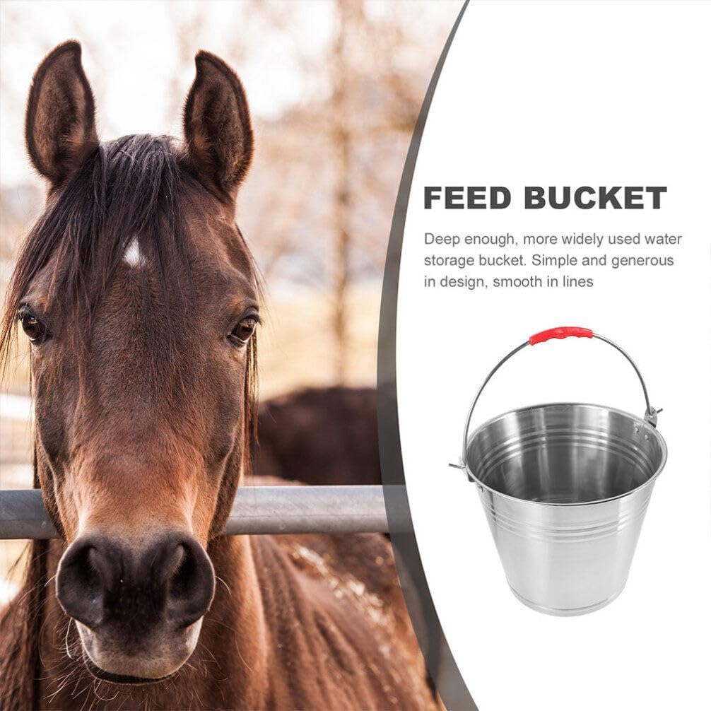 Features-Color:Silver,,-Material:Stainless Steel,,-Size:30.00X26.50X20.00cm/11.79X10.41X7.86in,,-Capacity:10L,,Package Including1 x Horse Feeding Bucket