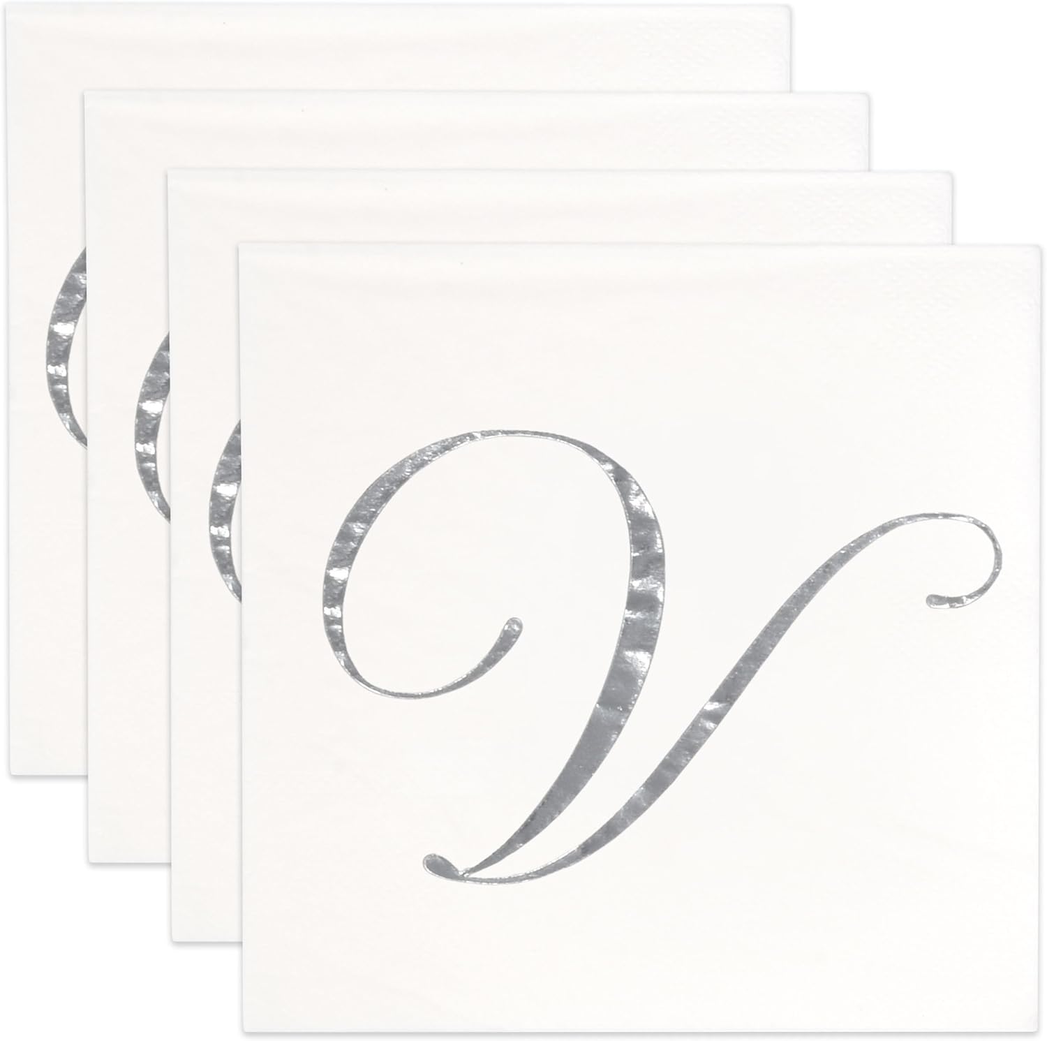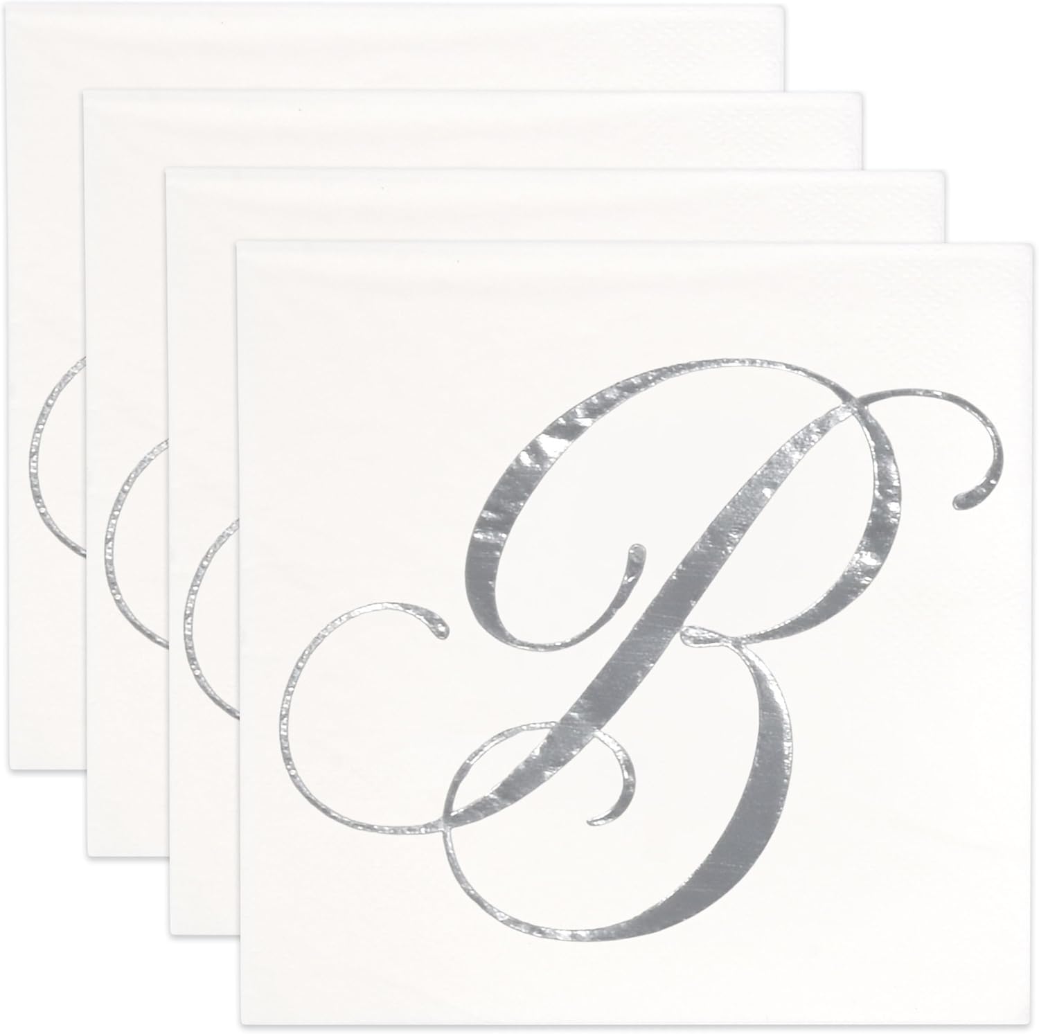 Monogramed Cocktail Napkins Serve 100: Gift Boutique square monogram cocktail napkins features the letter B printed in silver foil on white. These napkins will definitely enhance your table and impress your guests. These are essential for providing guests high-end comfort and luxury. Measures:5" x 5" folded and 10" x 10" unfolded. For Gatherings & Special Events: Perfect for 50th anniversaries, birthday parties, tea gatherings, and wine tasting. Flawless napkins for wedding reception, engagement and graduation parties, Christmas dinner, New Years Eve, fancy restaurants, holidays, bridal shower, hearty lunch and more! Treat your guests with all the attention they truly deserve! High Quality: Napkins are made of high quality thick paper. Napkins are soft and absorbent & dry your hands quickly. These personalized napkins will be great for any party. The metallic silver B initial party napkins really adds dimension to your parties as your guests will love the pretty design. Enough for Your Guest: Stock up with these silver foil napkins so you can be assured that you will have enough for all your guests who will attend your party. Serve dinner to guests in catering, buffet, potluck, events or daily meals. More Time To Enjoy: Disposable paper reduces clean up time so you can enjoy more time with friends and family. Perfect for your own house or as a gift for a friend. Ideal for dinner table placement, office, party decor, powder room, bathroom vanity, kitchen counter top and guest bathrooms.