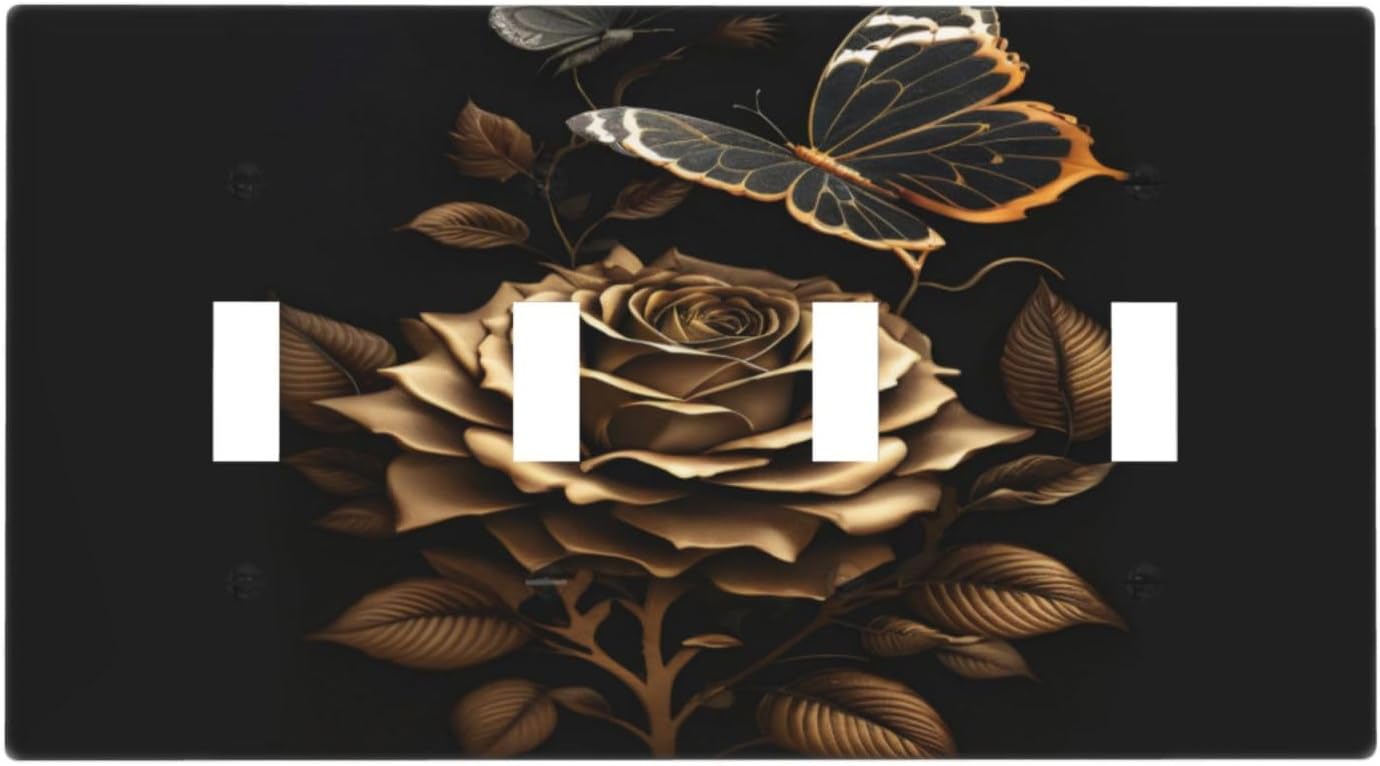 | Color | Gold Rose Butterfly On Black Background |
