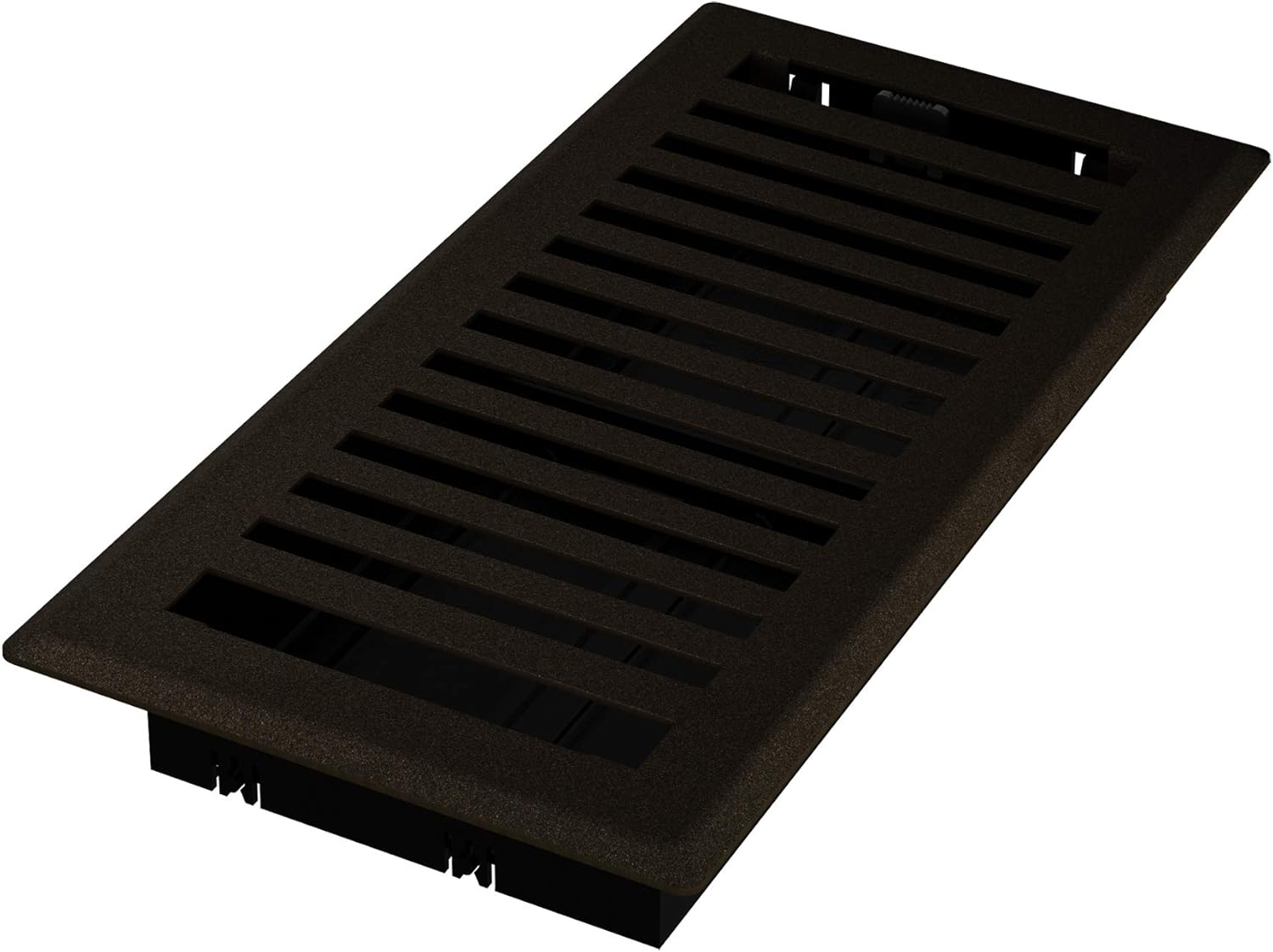 Imperial's Signature Series decorative floor register with classic and functional Montezuma design. Crafted for beauty, durability and designed to compliment trending floor finishes. 1. 55mm solid steel face plate with textured powder coat painted finish. High impact polystyrene damper body is rust proof. Adjustable multi-directional airflow.
