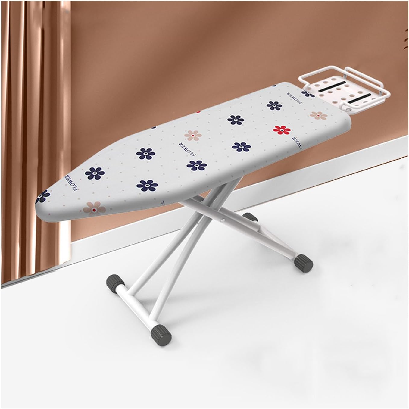Features:1. Breathable metal mesh ensures smooth steam circulation and rapid heat dissipation.2. Foldable design makes moving and storing effortless, perfect for small spaces like closets, living rooms, and laundry rooms.3. Carbon steel stand with non-slip feet ensures a secure hold every time you iron, protecting tile or wooden floors.4. Versatile six-level height adjustment accommodates all heights, allowing comfortable ironing whether standing or sitting.5. User-friendly iron stand provides secure support and optimal heat dissipation, making it easy to access and organize during use.6. Heat-resistant cotton pad is breathable and effectively dissipates heat without sticking or damaging fabrics.7. Suitable for tailor shops, apartments, homes, and clothing stores.Specifications:Material: SteelStyle: Modern and minimalistUnfolded dimensions: 111 * 31 * 86 cm; Ironing area: 111 * 31 cm; Folded dimensions: 111 * 31 * 6 cmWeight: 3.5 kg