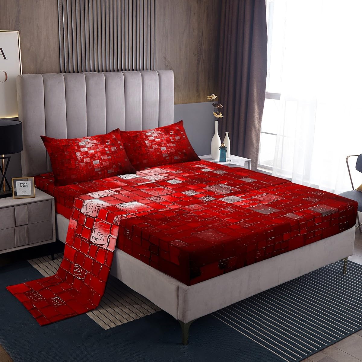 Our bed sheet is made of polyester fabric, lightweight and soft; stylish design is very suitable as room decoration for boys and girls; keep warm in winter and cool in summer; create a comfortable sleeping environment to make you fall asleep all night Range of size 1 twin fitted sheet 39 inch x 75 inch x 16 inch and 1 twin flat sheet 66 inch x 96 inch and 1 standard pillowcase 20 inch x 30 inch 1 full fitted sheet 54 inch x 75 inch x 16 inch and 1 full flat sheet 81 inch x 96 inch and 2 standard pillowcase 20 inch x 30 inch 1 queen fitted sheet 60 inch x 80 inch x 16 inch and 1 queen flat sheet 90 inch x 102 inch and 2 standard pillowcase 20 inch x 30 inch 1 king fitted sheet 78 inch x 80 inch x 16 inch and 1 king flat sheet 90 inch x 106 inch and 2 standard pillowcase 20 inch x 36 inch