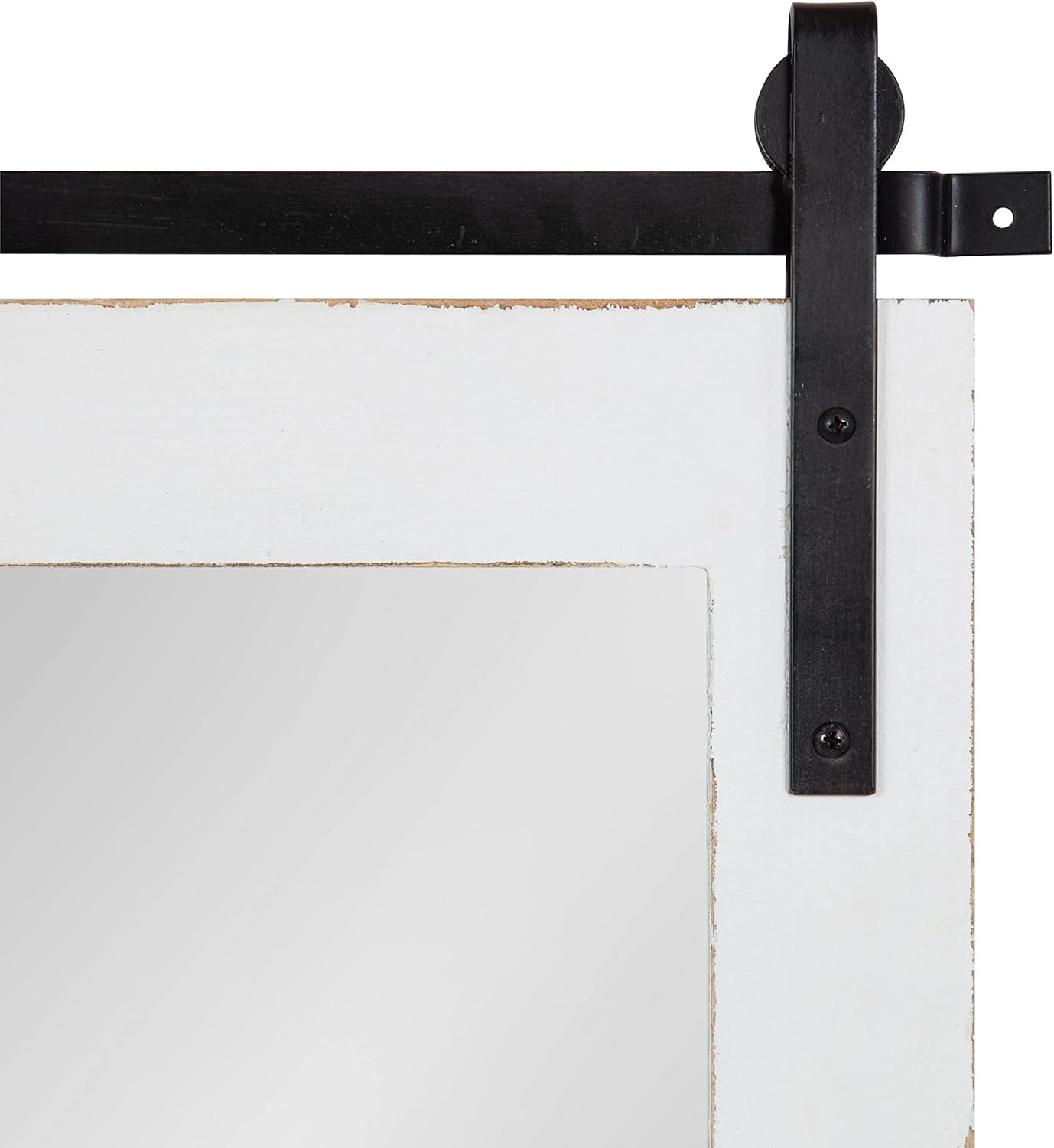 Decorate your home with farmhouse functionality by incorporating the Cates pub mirror into your wall decor. Inspired by rustic design, the Cates pub mirror has a barn door-inspired door with a wooden frame hanging from metal brackets. This wooden frame is crafted from robust, solid wood, while the metal brackets are crafted from rich iron to offer secure hanging. The distressed white finish on the solid wood frame also lends itself to vintage style that offers coastal coziness in any space of your home. The overall dimensions of this shelf are 41.5 inches wide by 4.25 inches deep by 26.75 inches tall. However, this mirror isn't purely aesthetics, as it also features a full shelf and five hanging pegs. The shelf is 40 inches wide by 3.5 inches deep, giving you plenty of space to hold household necessities and display small decor accents. The five hanging pegs are excellent for hanging pet leashes, light jackets, and small backpacks. Hang the bold Cates pub mirror in a matter of minutes using the pre-drilled holes in the iron brackets.