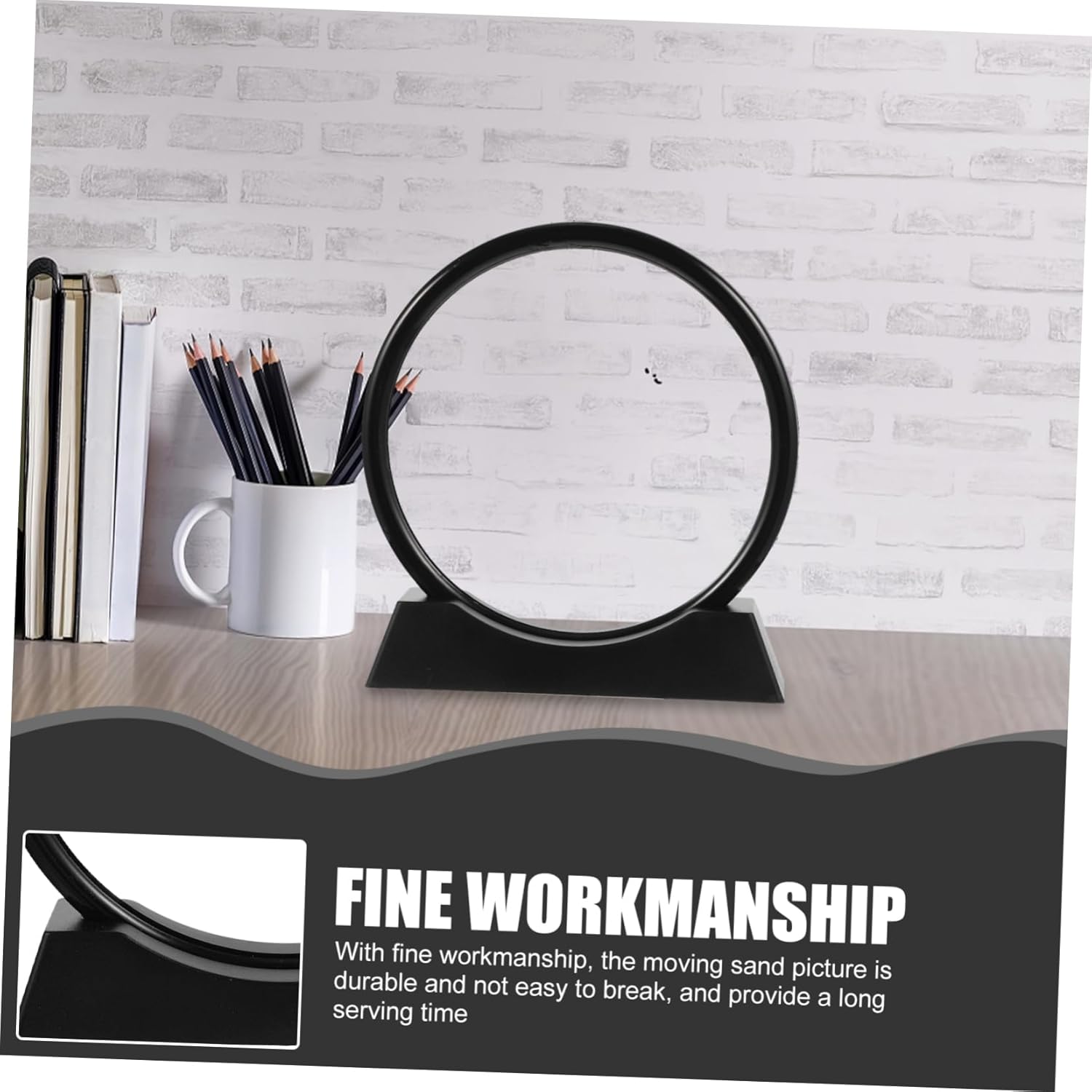 Package List 1 x Picture Frame 1 x Bracket 1 x Liquid Bottle 1 x Spoon 1 x Needle 1 x Injector 1 x Glue 1 x Set of Sand Features -Color:Black sand painting ornaments -Size:20.00X17.00X4.00cm/7.86X6.68X1.57in desktop decor -Material:Glass, plastic, stainless steel, sand flowing sand painting -Fine workmanship produces good, -shaped sand painting decoration, very sandscape moving sand picture. -Daily maintenance is relatively easy, and the dust can be wiped off with a damp cloth DIY Moving Sand Decoration. -Break the dull feeling of space, full of vitality, suitable variety of scenes of space matching glass sand painting. -The DIY sand art picture is a great present for friends at New Year, birthday, housewarming, wedding and other moments flowing sand ornaments. -It can be used to decorate the living room, bedroom, and some other places, easy to use Moving Sand Painting.Goods Informationglass sand painting This quicksand painting decoration is made of good material for long time and use.moving sand picture Allowing you to use it long time.flowing sand ornaments Creative design, a perfect decoration to your home or office.DIY Moving Sand Painting Decor A great photo prop, use it to take some interesting photos of your friends