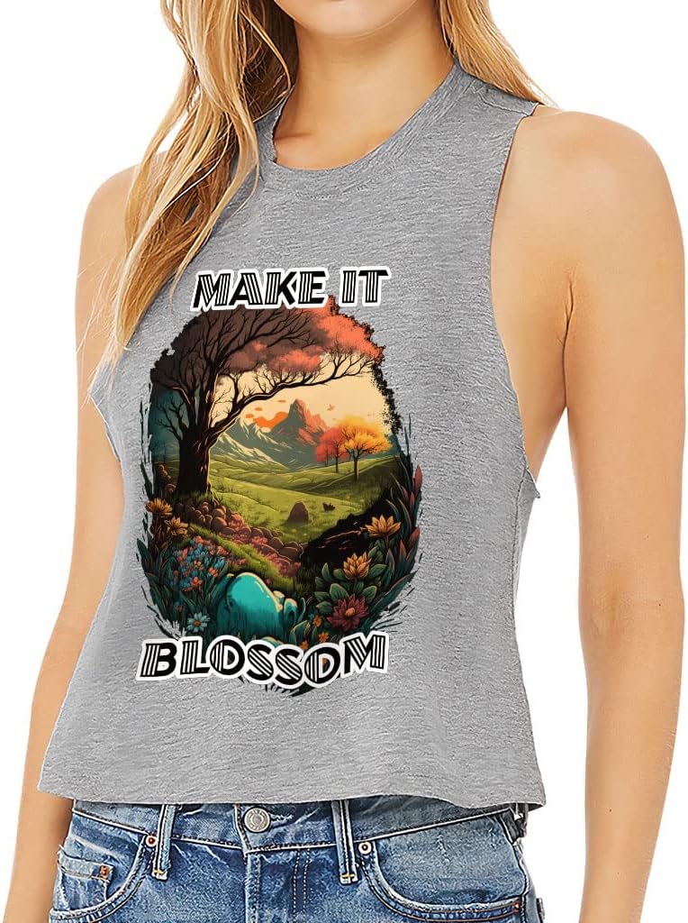 Cute and flattering Make It Blossom Racerback Cropped Tank is suitable for most indoor or outdoor activities, such as gym, yoga, running, hiking, beach or relaxing around the house. Pair Graphic Women's Tank with your favorite sports bras, especially strappy ones, and high-waisted leggings, then you will enjoy cool and comfortable exercise throughout the summer.