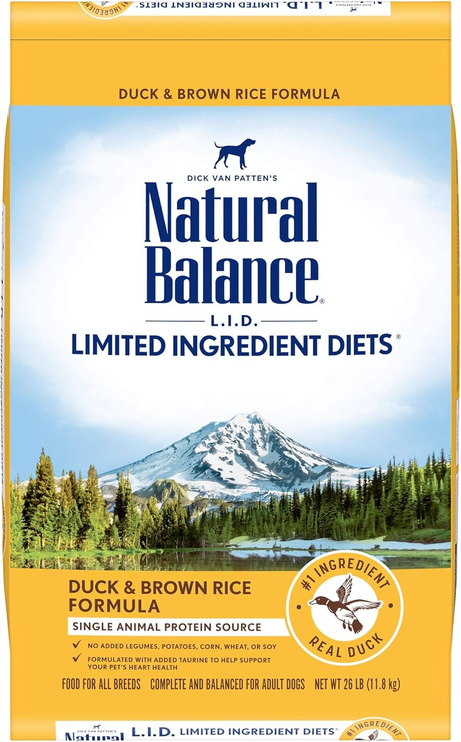 Natural Balance Limited Ingredient helps dogs with ingredient sensitivities live happy, healthy lives. Our Salmon & Brown Rice Recipe features Real Salmon as the #1 ingredient and the single source of animal protein, making it a gentle and balanced sensitive stomach dog food. Fiber-rich brown rice supports easy digestion, while balanced omega fatty acids promote healthy skin and a shiny coat. Formulated without corn, wheat, or soy, and free from artificial flavors or colors, this premium recipe is a vet recommended dog food that provides complete nutrition. Perfect as a wholesome salmon and brown rice dog food made for dogs with ingredient sensitivities.