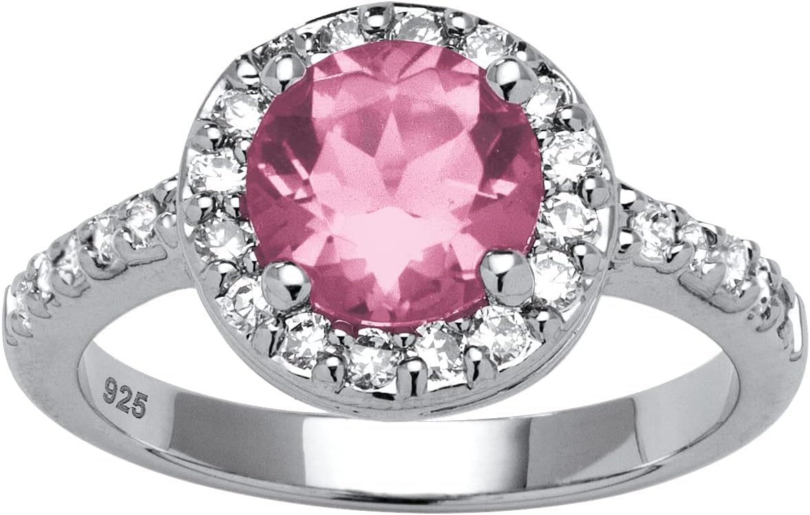 Your personal birthstone set with flair in .55 carats T.W. of cubic zirconias. The sparkling czs are the perfect complement to the vibrant, simulated birthstone, which takes center stage. Set in sterling silver. Sizes 5-10. - 53158