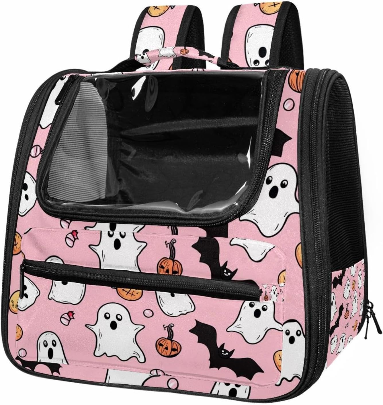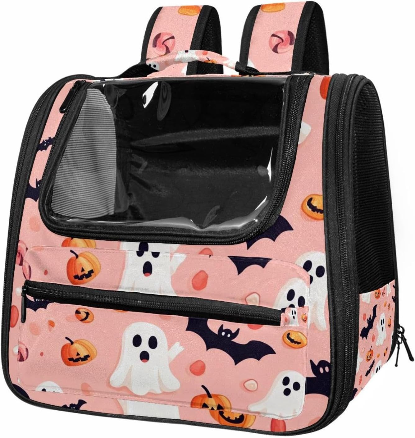Well made: Cat Backpack Carrier is made from 900D oxford fabric, pp webbing, velvet, nylon, which is very sturdy, environmentally friendly and breathable. Not easily scratched by pet’s claws, pet backpack carrier is SAFETY & ANTI-SCRATCH. The back padding will give you a comfortable and breathable experience. Ventilated Backpack: With a breathable window in the front, this pet backpack allows cats to enjoy the sun without feeling stuffy. There are two side pockets and one big front pocket, and you can take foods or toy for your kitten pet. It is big enough for cat to turn around, and there are side pockets and hook holes, you will enjoy the greatest convenience when taking your cat out. Perfect size: Cat carrier is 15.75x9.84x13.78in/40x25x35cm. Fits most small/medium sized cat, dog, and pet. Quality fleece bed provide a comfortable place for your pet. Lightweight and easy to carry to all places. Built-in harnesses keep your naughty friends from escaping. Removable cosy mat for easier cleaning and let your pet enjoy it inside. Easy to carry: The adjustable shoulder strap of pet carrier bag help you hands-free carrying and makes it the most safe and convenient pet carrier bag for your travel. Seat belt design provide pets with safety protection throughout the trip. Pad protection keep your pets comfortable during travel. Unique Design: Innovative inside graphic design gives you a stereoscopic 3D visual experience. You also send us the photos you interest to make your unique dog or cat carrier. Pet bag is also a amazing gift for pet lover.