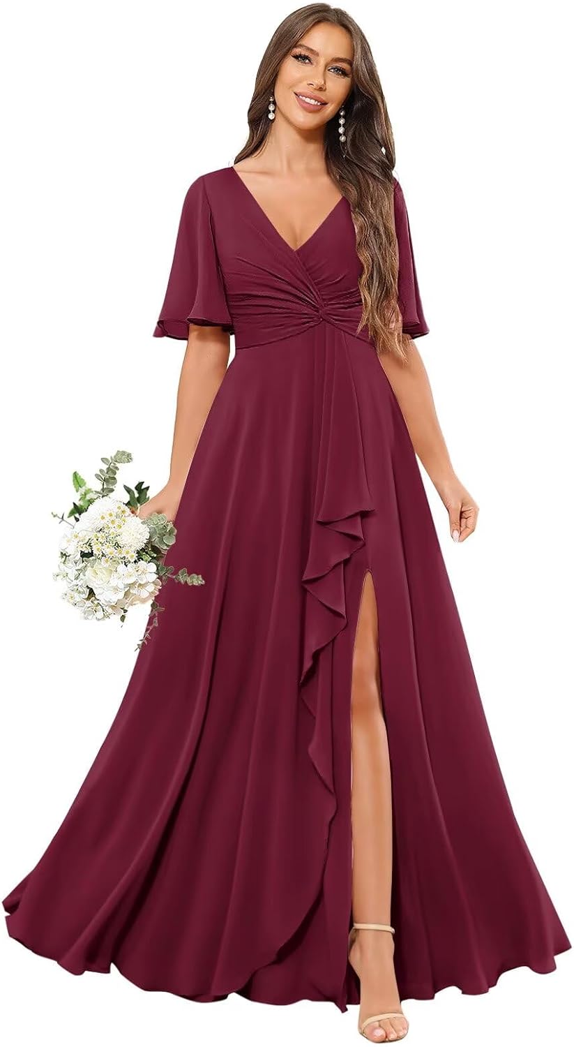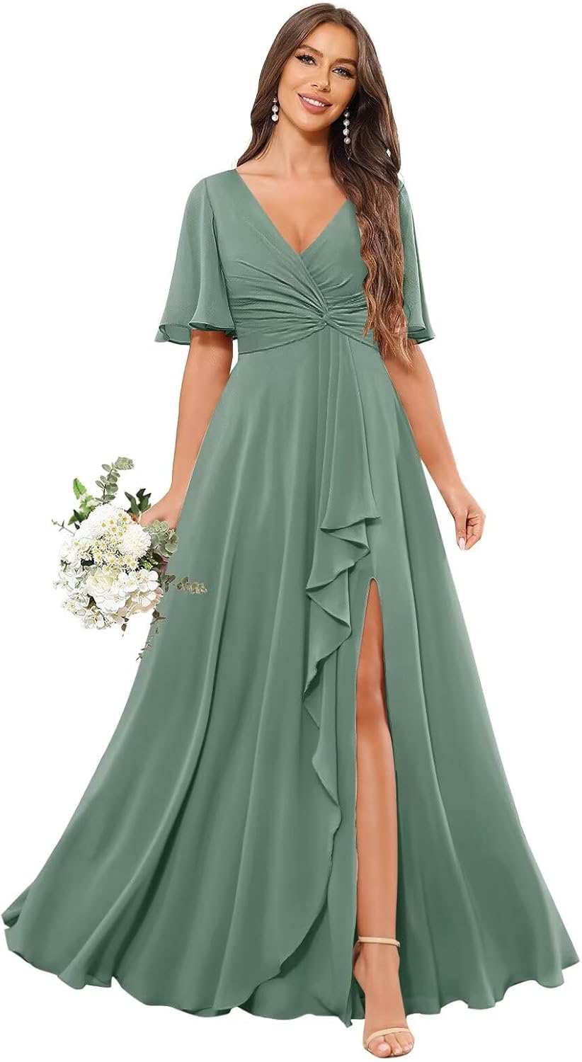 | Embellishment Feature | Ruffles, Short Sleeve, Side Slit, V Neck, with Pockets |