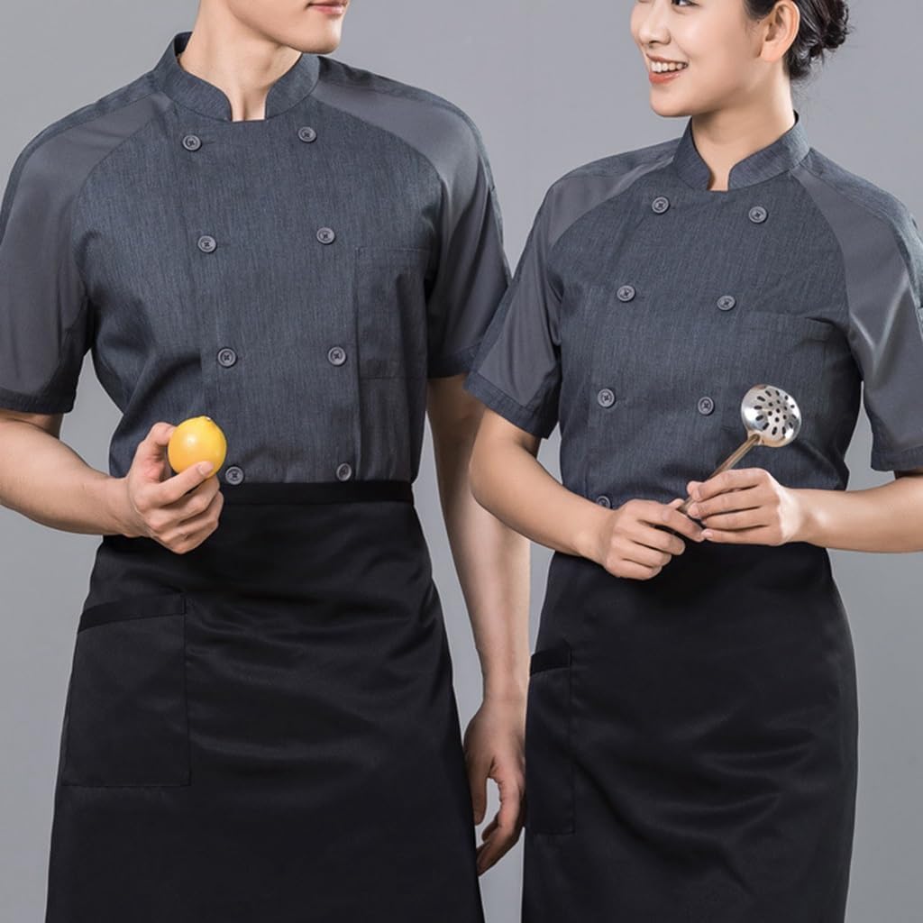 This chef coat size might be a little different than your usual size. In order to purchase a suitable chef coat, please refer to the size picture !Feature--After washing, it does not deform and does not fade.--Soft and comfortable, sweat-absorbent and breathable.Material: cotton polyester blendPackage include: 1* chef jacketWide range of applications to satisfy a variety of occasions. Such as kitchen, hotel, bakery, restaurant, etc.Washing Instruction: cold water under 30 degree, hand wash; Do not bleach, do not tumble dry, do not iron.The product may have some color difference. Please understand, thank you!