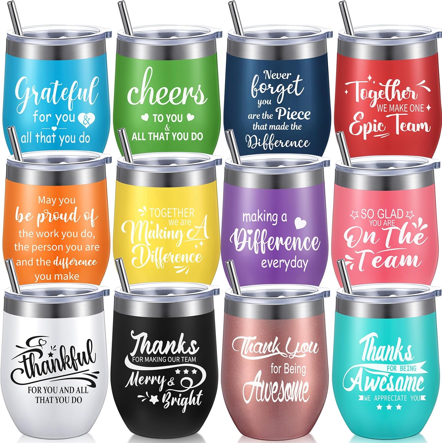 Features: Easy to clean: These tumblers with lid are easy to clean, the wide mouth design makes them easy for you to wash, you can use them to enjoy delicious drinks, very convenient use. Suitable capacity: These awesome wine tumblers are about 11.5 cm/ 4.53 inches in height, 6 cm/ 2.36 inches in bottle diameter, 8 cm/ 3.15 inches in top diameter, having a capacity of about 12 ounces, can hold various drinks. Specifications: Main material: stainless steel Main color of wine tumblers: black, white, green, rose gold Capacity: about 12 oz Sizes: Wine tumblers: about 11.5 cm/ 4.53 inches in height Bottle diameter: about 6 cm/ 2.36 inches Top diameter: about 8 cm/ 3.15 inches Package includes: 12 x Wine tumblers (with lids, straws, brushes) Notes: Manual measurement, please allow slight errors on size. The color may exist a slight difference due to different screen displays.