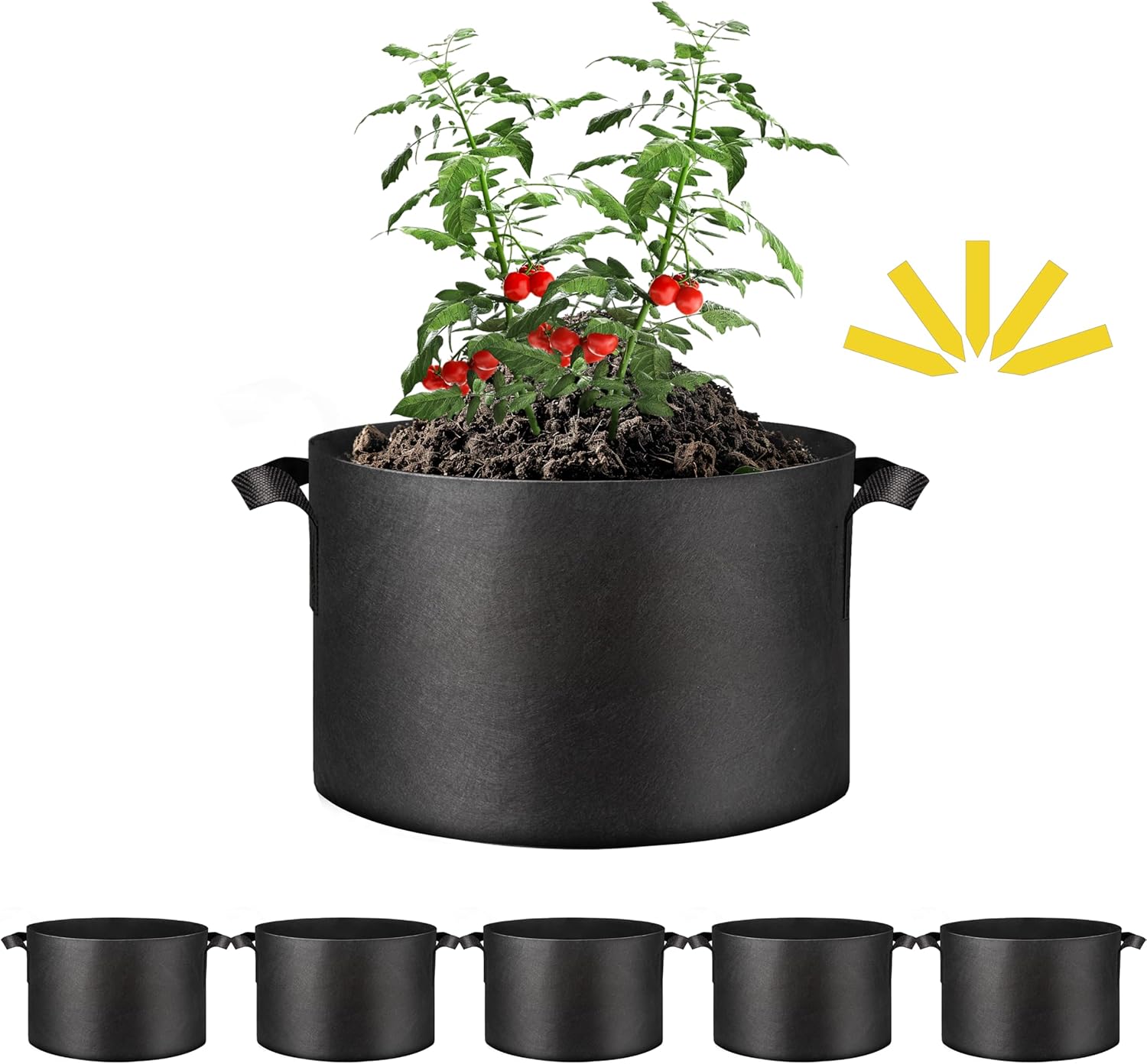 Simple Deluxe Grow Bags 15 Gallon 12 Pack Planter Pots with Handles, Thickened Nonwoven Fabric Aeration Cloth Bag, Heavy Duty Gardening for Tomoato, Potato, Vegetable, Herbs and Flowers, Black with 12 labels