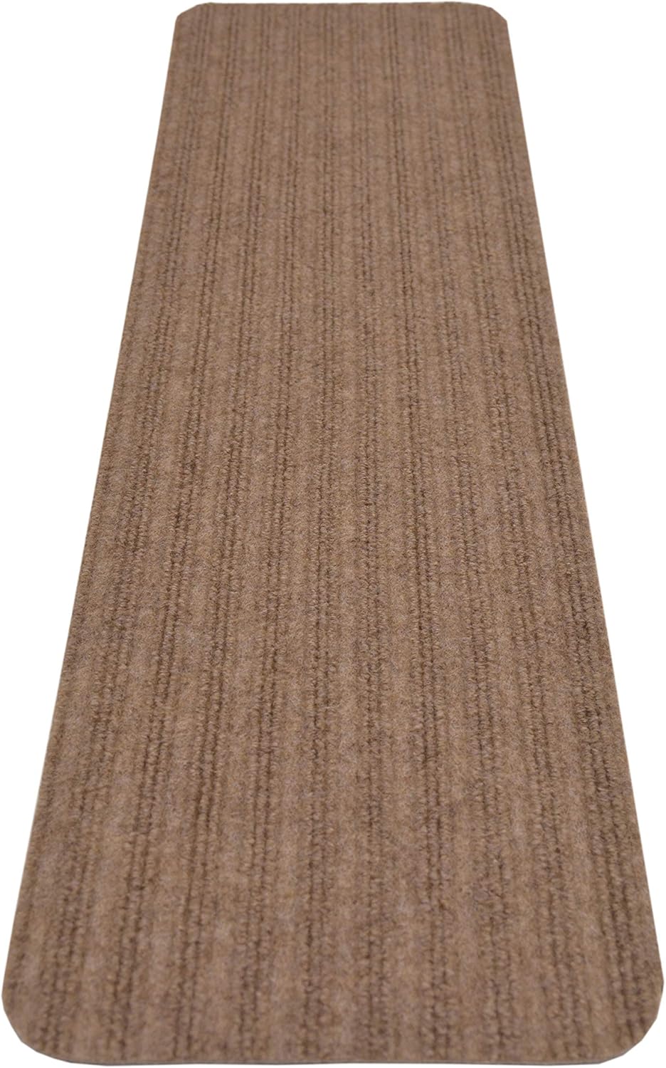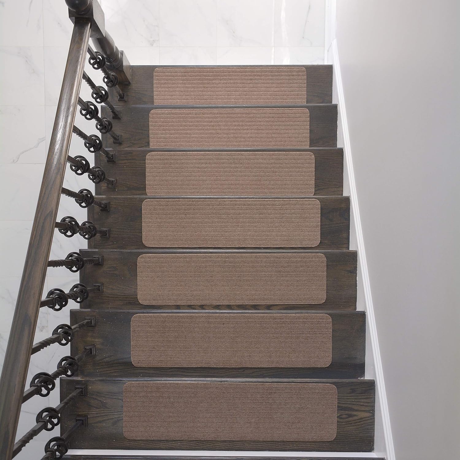 Our indoor stair treads offer 100% UV treated polyester machine made construction with skid slip resistant rubber backing. Strong construction and soft backing, gentle on your stair surface | Helps for protecting your stairs and reducing noise significantly as well as preventing slips and accidents. | Our products are designed to help and assists elders, pets and your little ones to use your stairs safely | Cost efficient and easy to install, simply place your rubber backed carpet stair treads on your stair surface, you can either center them or place them on the side of your choice | 100% UV polyester | Slip skid resistant rubber backing works on most of the floor types | Waterproof | Stain resistant | Easy to vacuum and clean low profile , simple spot cleaning with mild soap and damp cloth | Corrugated construction for better traction and liquid flow | Carpet Stair Tread Size : 8 inch x 30 inch | Color: Brown | Includes : Set of 13 Carpet Stair Treads