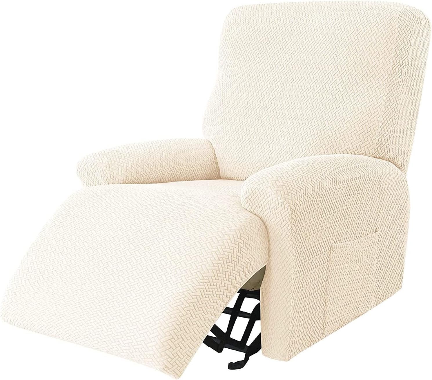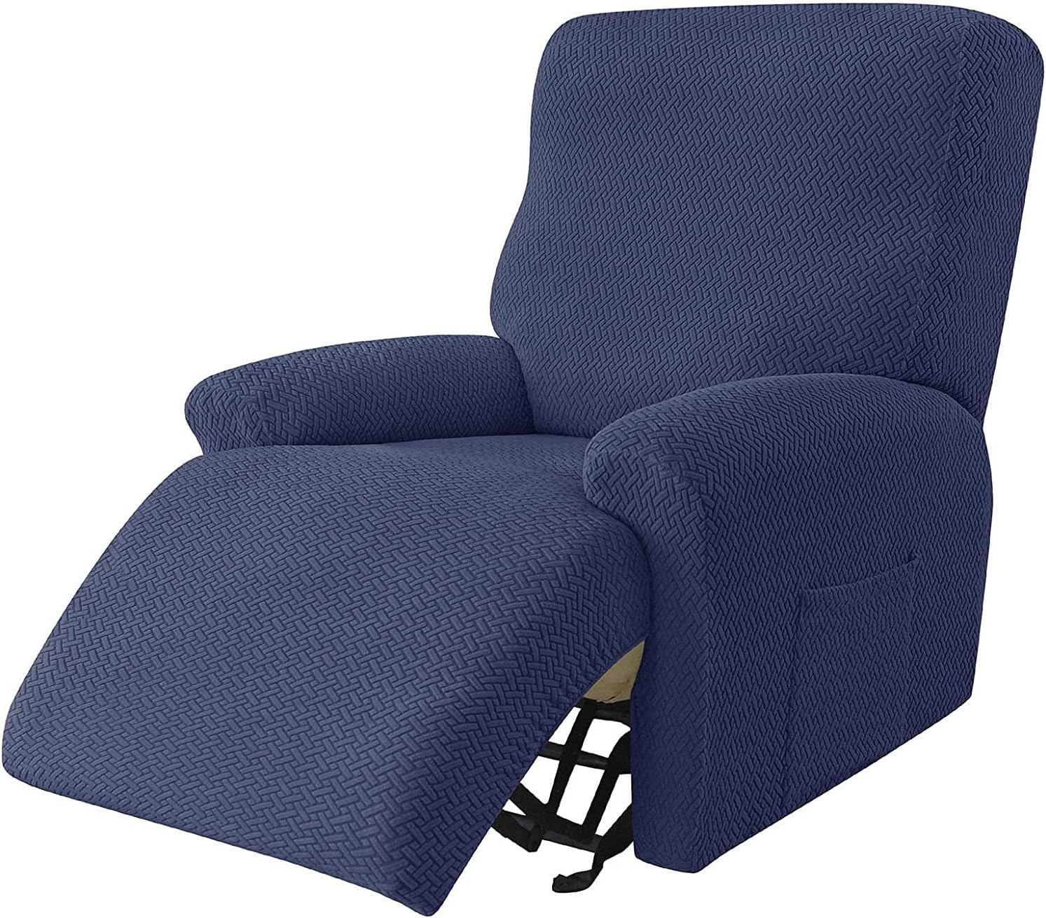 Elasticity: High-quality 90% polyester and 10% spandex fabrics, elastic stretch recliner sofa cover can easily wrap various recliners.2.4 Part of the design: Our recliner cover includes 1 backrest cover, 1 seat cover and 2 armrest covers. The design of the separate cover makes the recliner cover more suitable for reclining chairs.3. There is no recliner sofa cover, and the elastic band of the ultra-wide recliner cover is wrapped at the bottom of the recliner.4. The recliner cover has a side pocket to store the remote control and magazines.NoticeIn order to better fit your furniture, please measure your chair before buying.Attention: Due to different computers display colors differently, the color of the actual item may vary slightly from the above images, thanks for your understanding.Anything unclear or problem,just do not hesitate to contact us.We are sure get you perfect solutions. We want our customers to be 100% happy