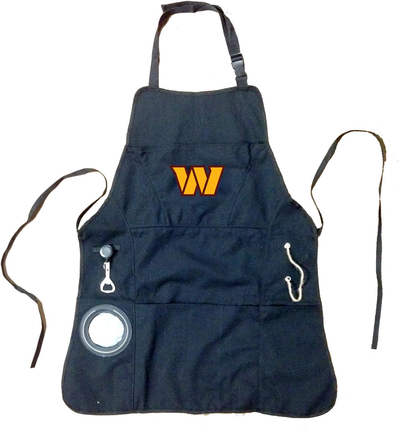 Made from heavy-duty cotton canvas with team logo embroidery. 5 pockets for tools and other essentials, rope cord and retractable bottle opener tool. Includes insulated bottle or can holder. Adjustable neck strap and waist ties. Fits most. At Evergreen, we are committed to producing premium, quality products to bring a touch of color and personality to your home. We respect and celebrate the uniqueness in everyone by offering one of the world's largest selections of home and garden decor.