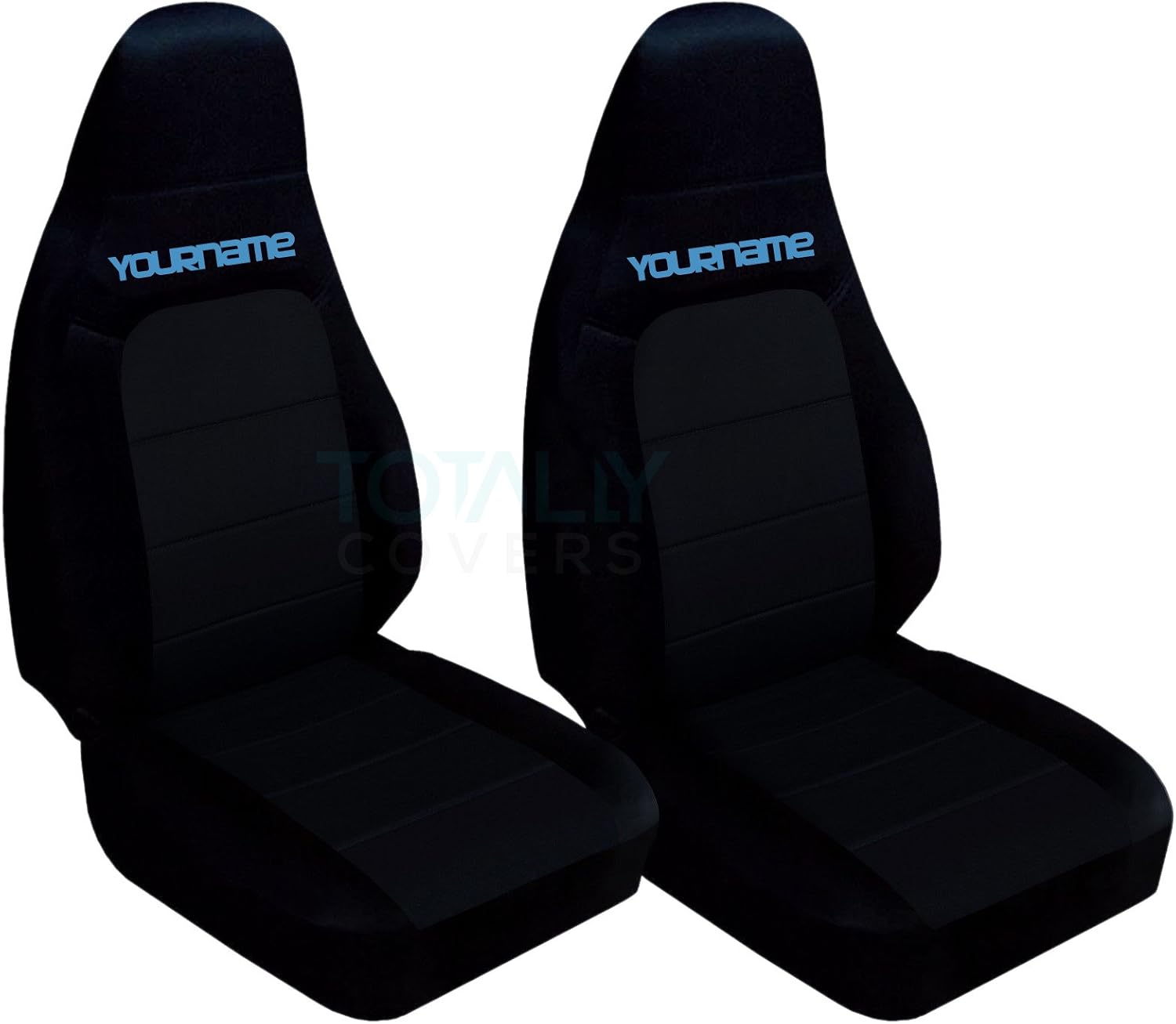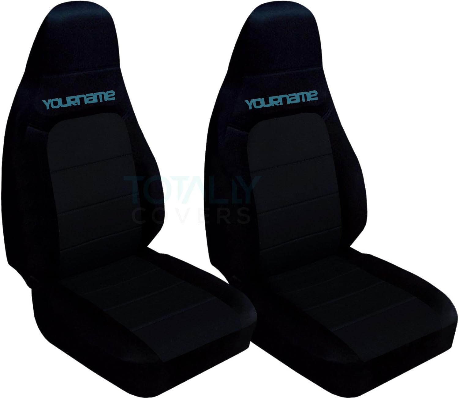 A set of black car seat covers for a 2001 to 2005 Mazda MX-5 with your name in lime green. Be sure to visit our storefront ("Totally Covers") where you can find the largest selection of seat covers, to satisfy even the most demanding of tastes. If you can't find what you are looking for, please contact us ("Totally Covers") We can make seat covers for ANY car, truck, van, RV or SUV in a variety of 145 colors and prints, and even add your name/text and logo/design on them!