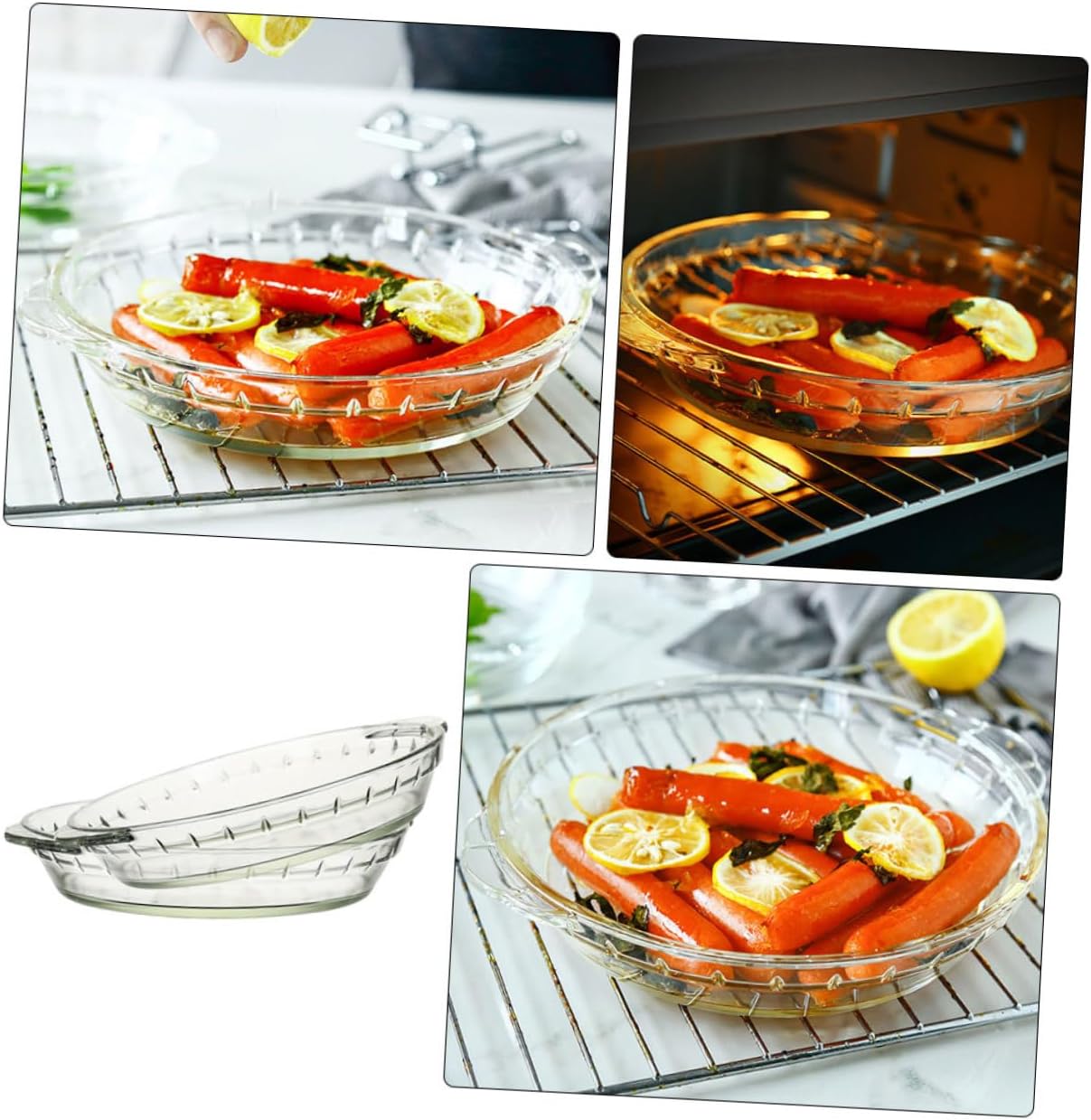 Package Include 2 x Glass Trays Characteristics -Size S: 255X225X43cm/1004X886X169in, 1030ml(Capacity) bakeware. -Material: Glass Baked Rice Dish -Color: Transparent pie plates -Size L: 285X255X43cm/1122X1004X169in, 1330ml(Capacity) Microwave - Stable and reliable material, natural impermeability, , easy to clean pie plate with lid. - The temperature can withstand -20 degrees -300 degrees Will not soften and deform under high temperature casserole dishes. - One-piece molding technology, no joints, smoother surface, no scratching, beautiful and pie dish. - and , sturdy and , you can safely heat food in the microwave or oven dishes. - Clear and bright, beautiful and generous, good kitchen baking tool round baking dish.Goods DescriptionCooking Dish Anti-scalding with handle, easy to move and hold, convenient to use.Baked Rice Dish and stable tempered glass material, not easy to deform and melt.clear tray This item is made from high-end tempered glass material which is and .Glass Tableware A professional microwave or oven baking tray