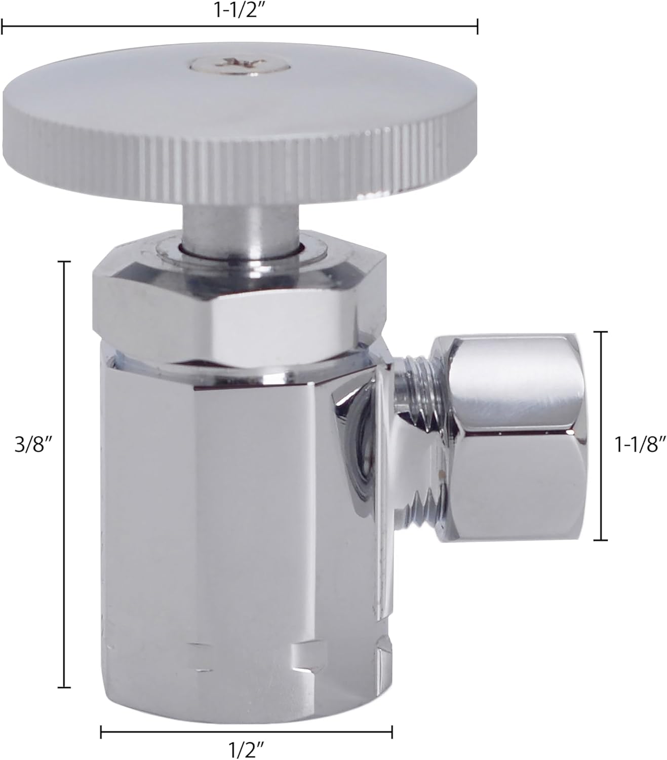 • ANGLE STOP VALVE: Round Handle Angle Stop Shut Off Valve, 1/2 inch IPS inlet with 3/8 inch compression outlet for positive seal