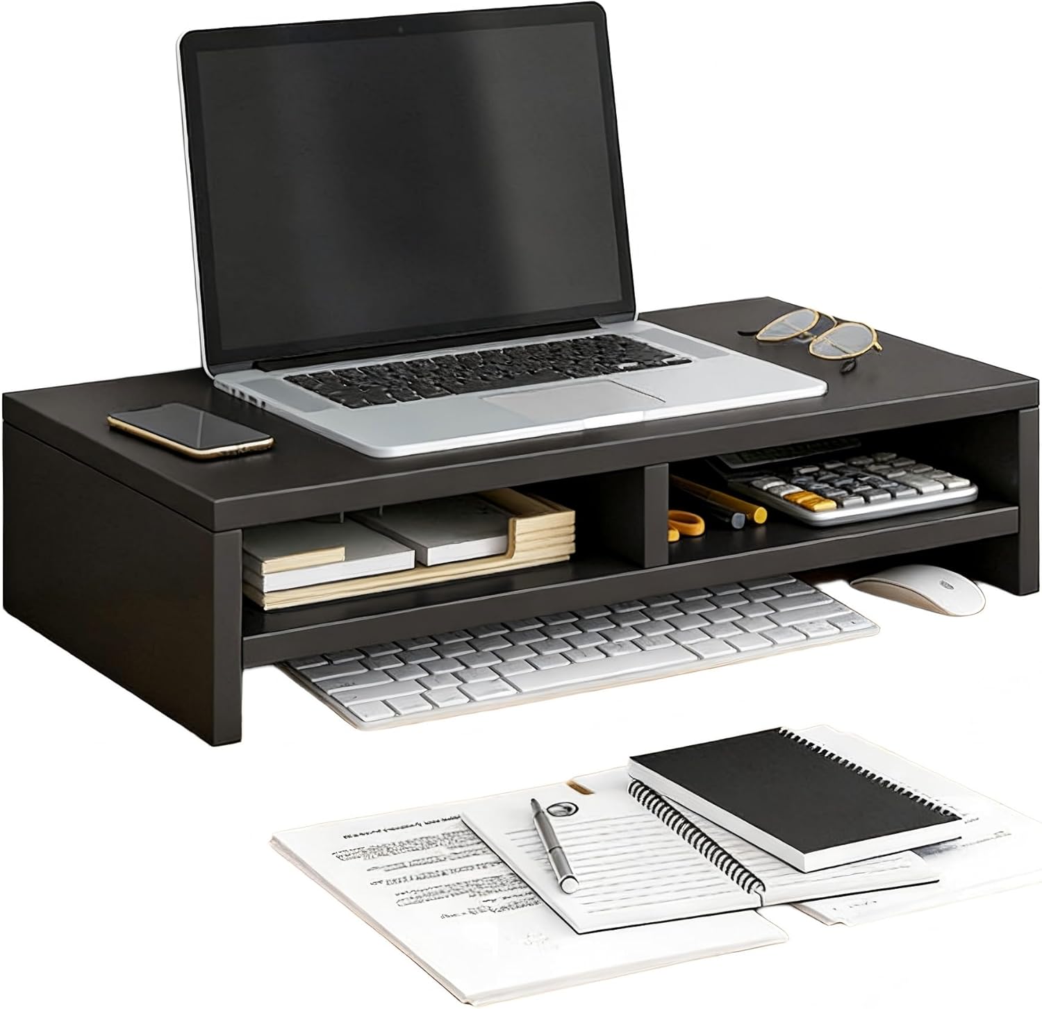This wooden monitor stand riser is designed to upgrade your daily workspace. It provides a proper height for your screen and offers large storage space to organize your desk, making your working environment neater and more comfortable. Product Name: Wooden Monitor Stand Riser Material: High-quality thickened wood board with wood grain veneer Size: 1-Tier: 19.7 x 9.4 x 3.3 inches; 2-Tier: 19.7 x 9.4 x 5.2 inches Color: White, Black,Natural Package Includes: 1 x Monitor Stand Riser, 1 x Assembly hardware kit, 1 x Instruction manual Features: 1.Ergonomic height design for comfortable viewing and better sitting posture 2.1-Tier and 2-Tier optional storage structure for desktop organization 3.Bottom space for keyboard and mouse to save desktop area 4.Sturdy thickened wood with good stability and load-bearing capacity 5.Rounded polished edges for safe and comfortable use Note: 1.Please allow 0.1-0.8 inches error due to manual measurement. 2.Clean with a soft dry cloth and avoid long-term moisture or direct sunlight.