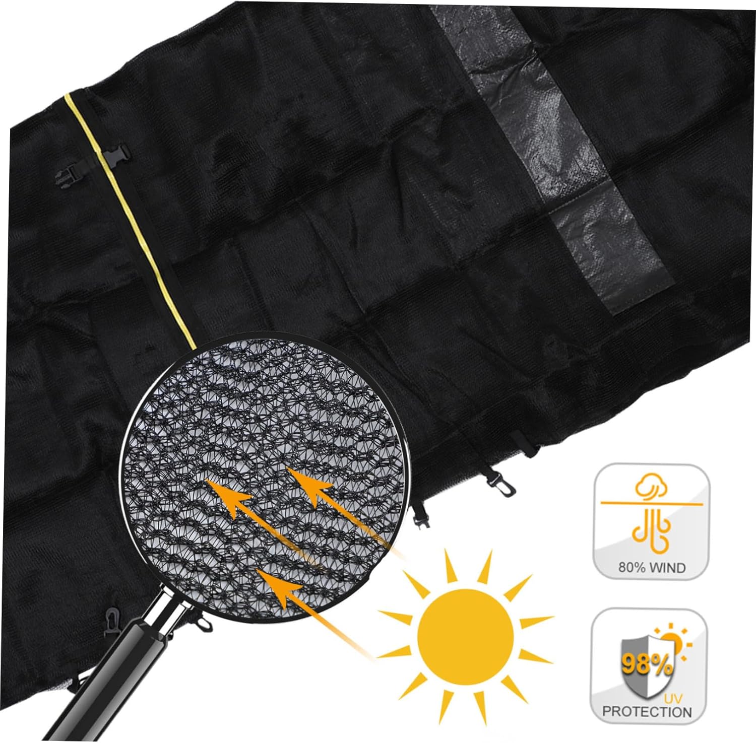 Package List 1 x Trampoline Protective Net Characteristics - Color: Black Anti-fall Net. - Material: PP Trampoline Mesh Net. - Universal Design: fits for most outdoor garden trampoline Safety Net - It is able to protect the kids from bouncing out of the mat and contacting with the frames Jumping Bed Protective Net. - Good workmanship and bounce give a nice feeling when jumping Trampoline Safety Net. - Made of PP material, which is thick and safe Safety Net for Trampoline. - The surface is smooth, without burrs and damage. strong and sturdy Bounce Protective Net. - It is an important accessory when putting the trampoline together, it is more convenient and quick to install Trampoline Supplies.Goods InformationAnti-fall Net Made of materials, durable and long-lasting.Safety Net for Trampoline Do you need a durable trampoline protective net? If so, take a quick look at this trampoline protective net.Trampoline Safety Net Unique design and craftsmanship ensure its popularity and practicality