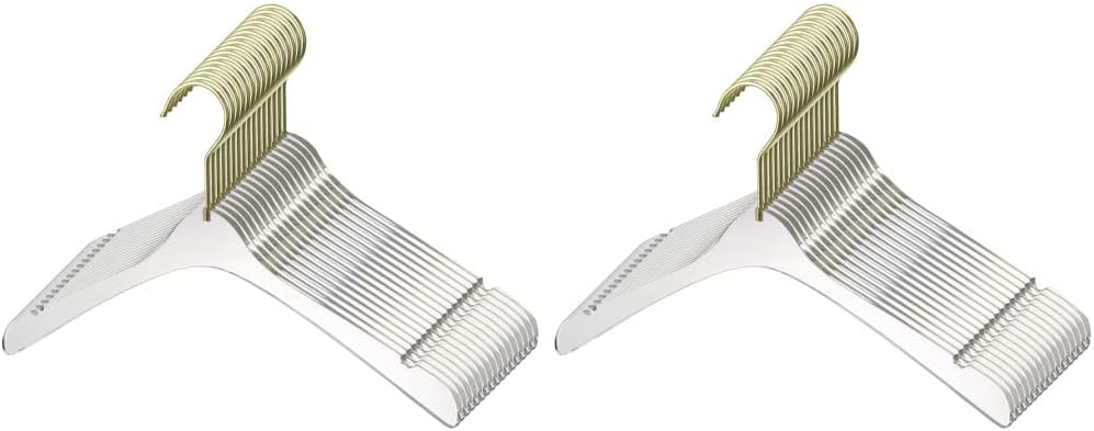 Shop our new line of "ACRYLIC HANGERS" to enhance you quality of livingThe acrylic hanger set is a set of beautiful solid transparent acrylic hangers with gold or silver swivel hook that were designed professionally by our team of designers to create an airy look in confined closet spaces.Luxuries LookBeautifully designed to give your closet a luxurious and airy look. These hangers are very sleek and modern. It is sharp and neat with the modern style that only lucite provides.Quality of HangersOur hangers are strong and sturdy and were built to last you a lifetime. These hangers are Non-slip and have tiny notches on the side to hold your clothes securely. YBM Home is a well known brand that provides high quality products for those who are longing for an upscale living, your welcome to check out our full hanger selection.Join our satisfied customers who are already enjoying these new "ACRYLIC HANGERS" Shop now, you deserve it!